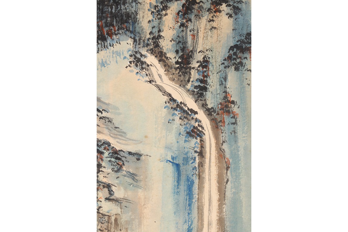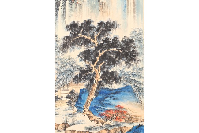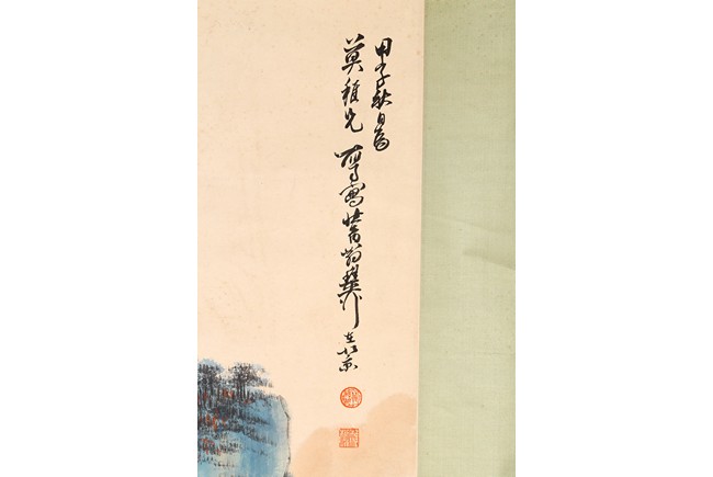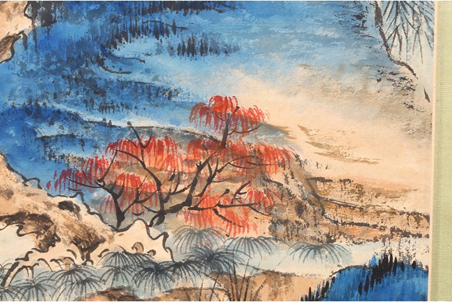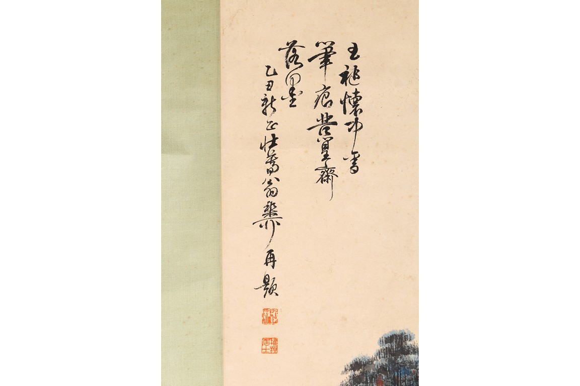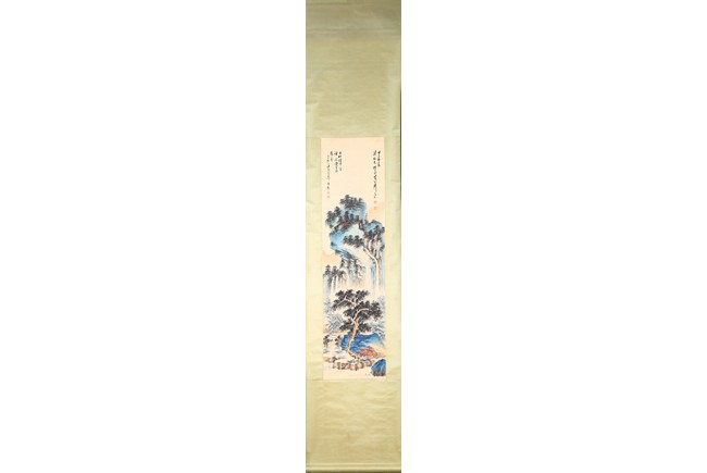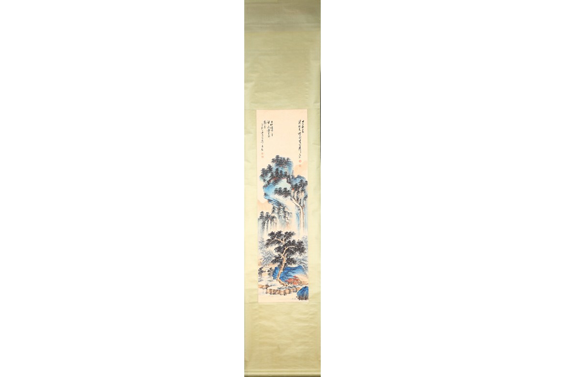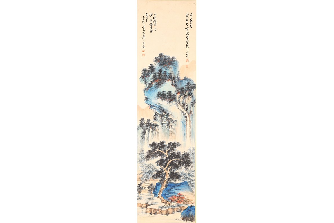 Color and ink on paper. Landscape. Hanging scroll. Inscribed and signed, with four seal marks. Xie Zhiliu (1910-1997)