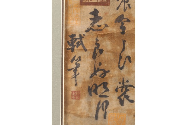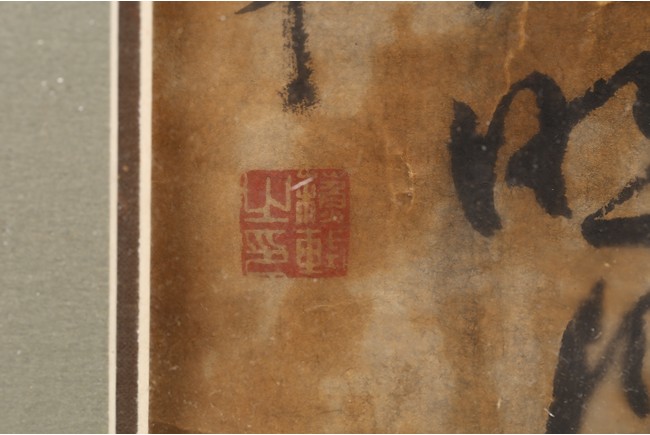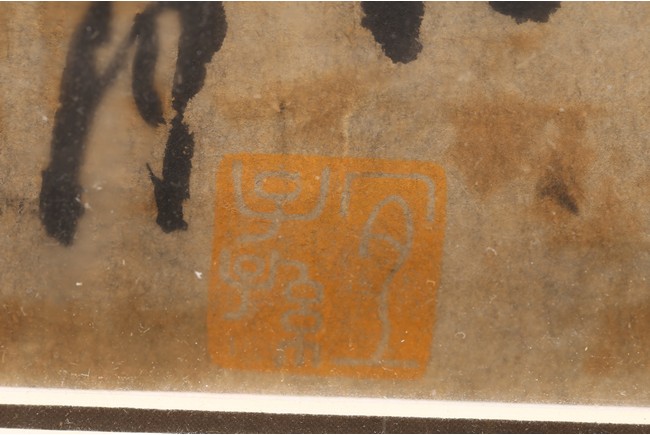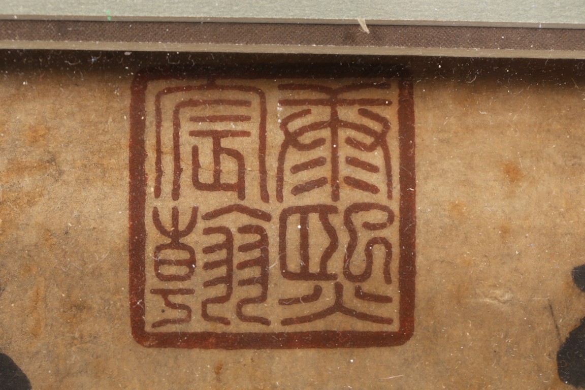 Ink on paper. Signed Shi, with seven seal marks. Framed.