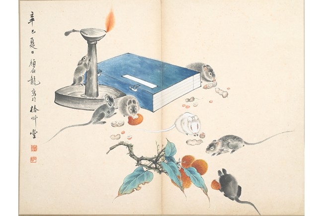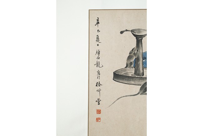 Color and ink on paper. Rat. Mounted on paper. Inscribed and signed, with two seal marks. Yan Bolong (1898-1955)