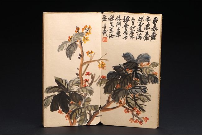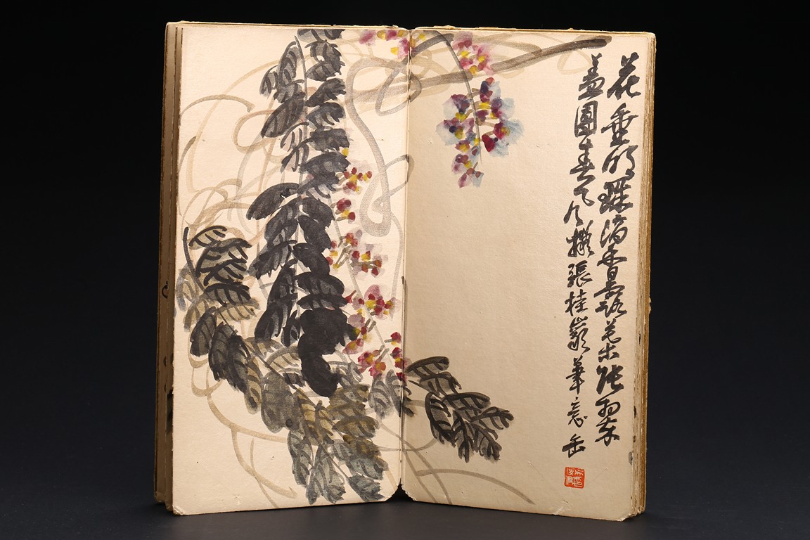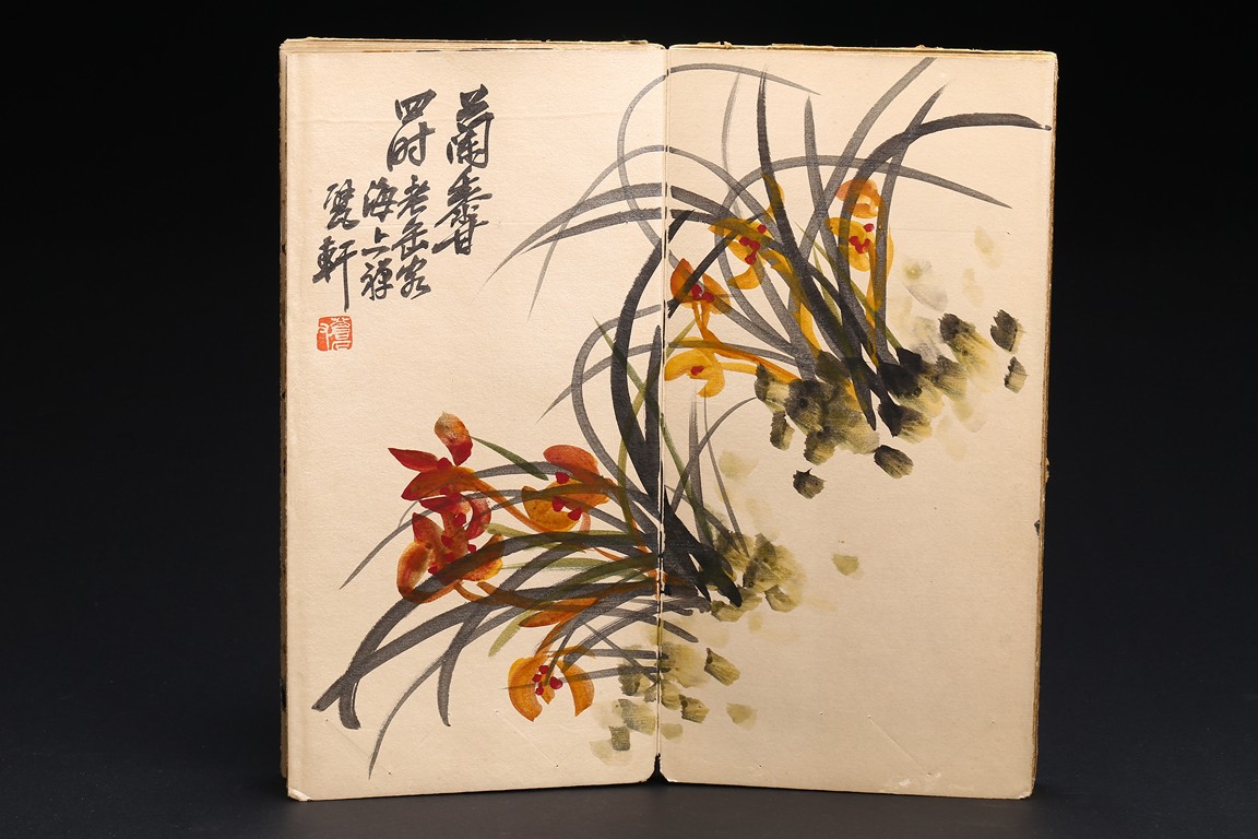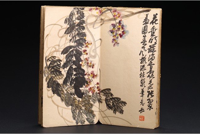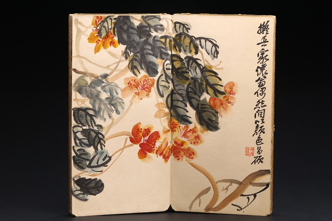 Color and ink on paper. Flowers. 6-leaf album. Inscribed and signed, with seven seal marks. Wu Changshuo (1844-1927)