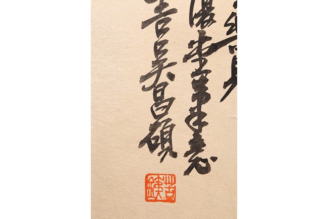 吳昌碩(1844.8.1—1927.11.29),初名俊,又名俊卿,字昌碩,又署倉石、蒼石,多別號,常見者有倉碩、老蒼、老缶、苦鐵、大聾、缶道人、石尊者等。