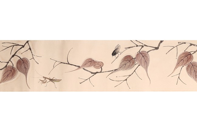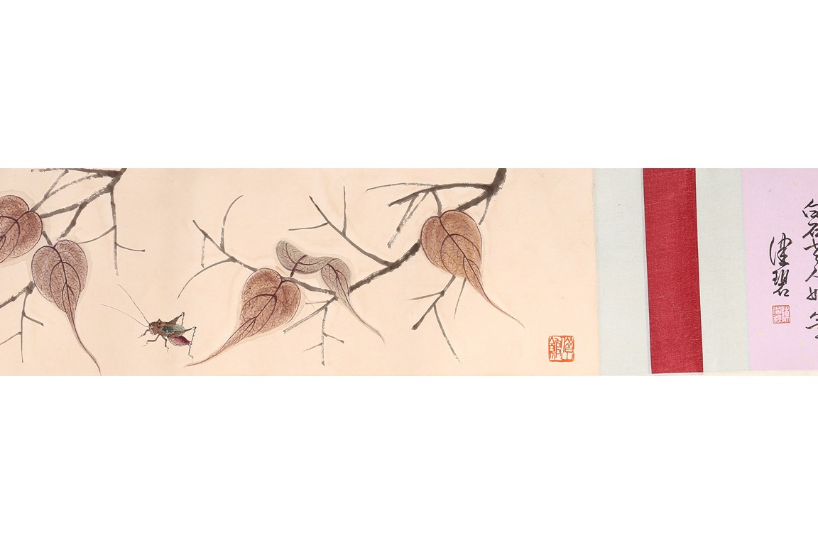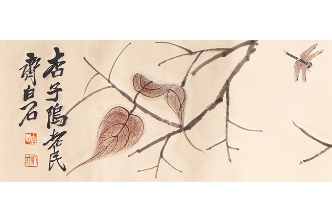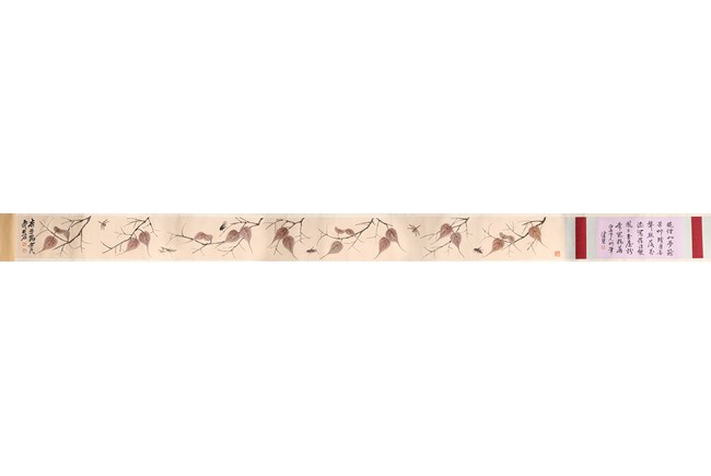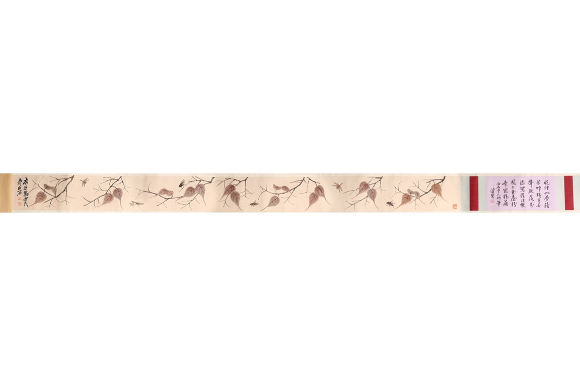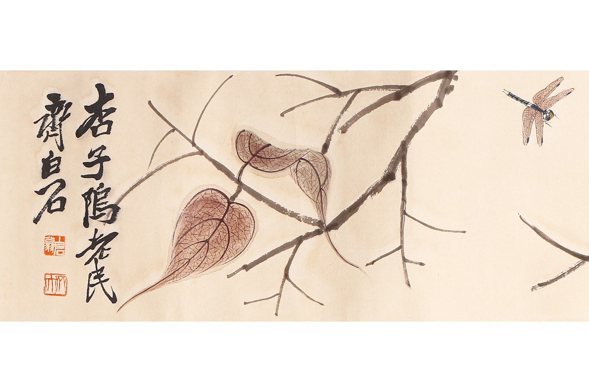 Color and ink on paper. Leaf and insect. Handscroll. Hanging scroll. Inscribed and signed, with four seal marks. Qi Baishi (1864-1957)