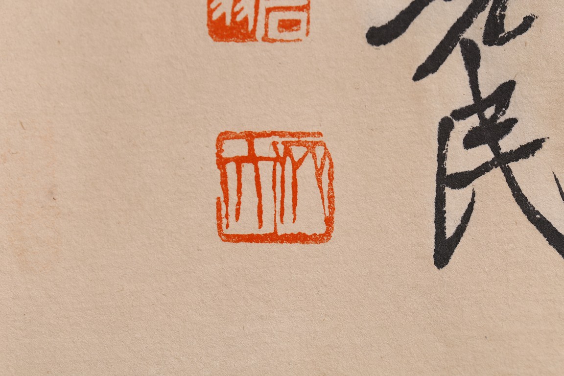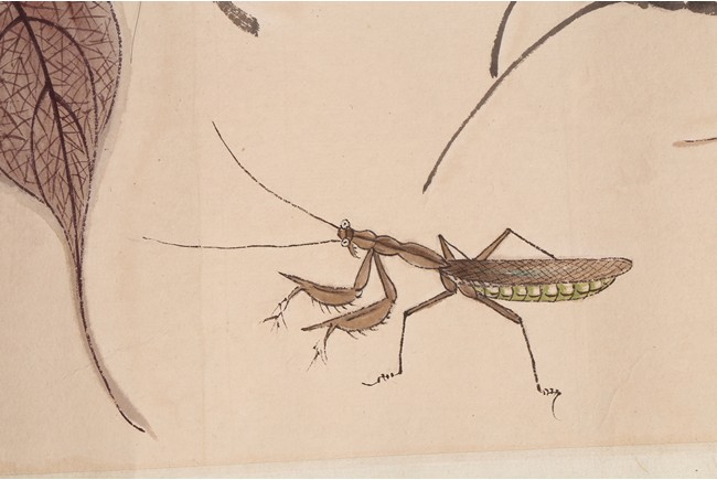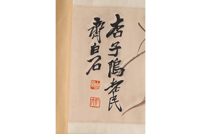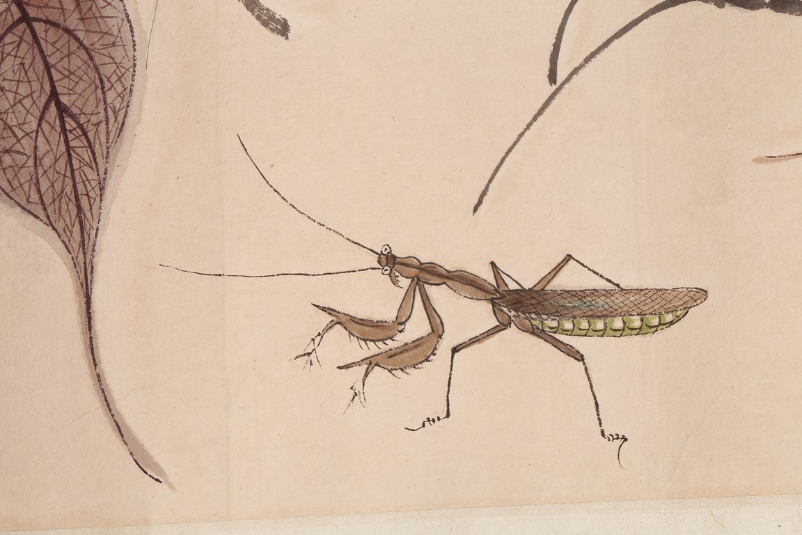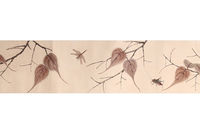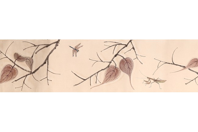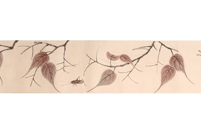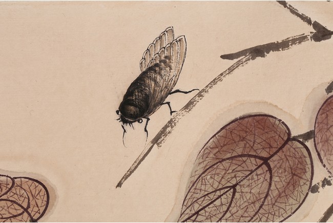 Color and ink on paper. Leaf and insect. Handscroll. Hanging scroll. Inscribed and signed, with four seal marks. Qi Baishi (1864-1957)