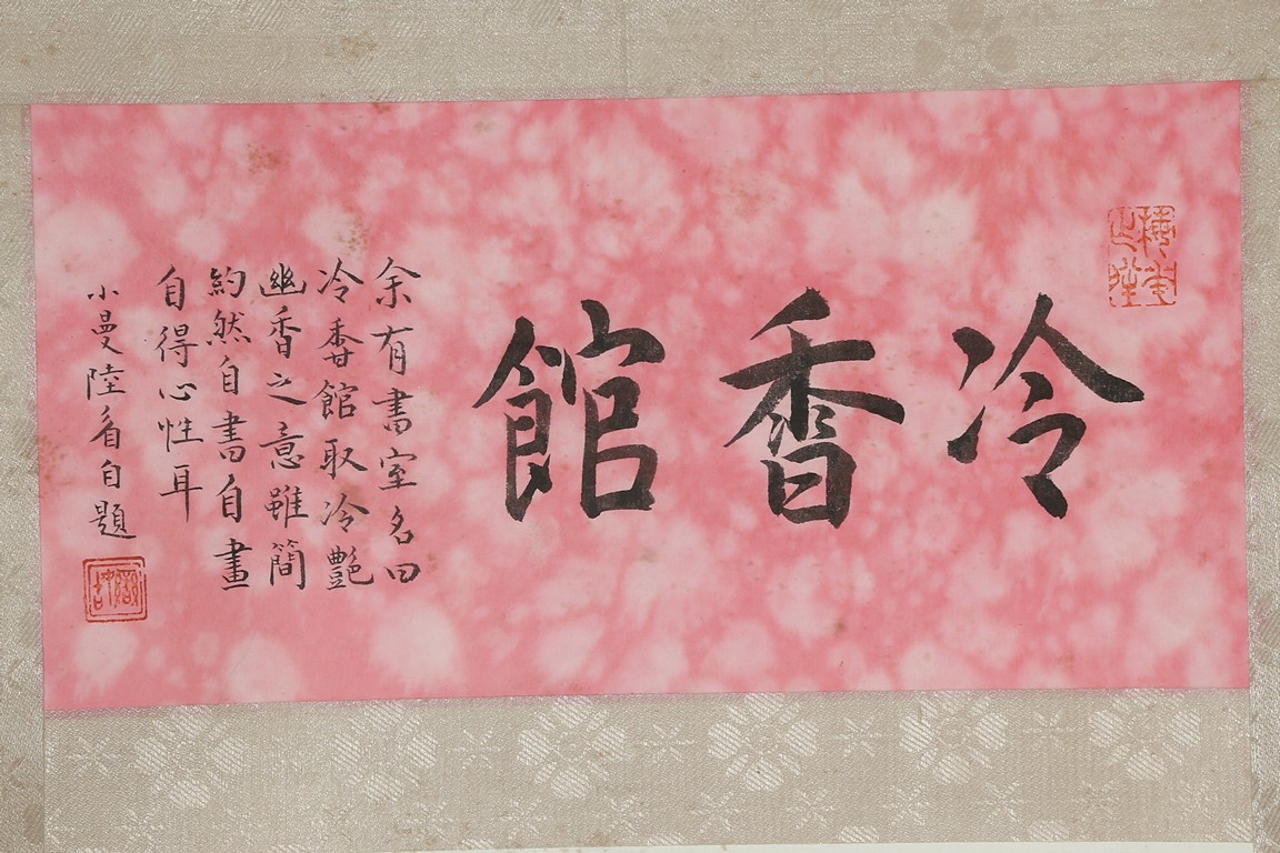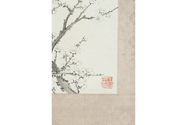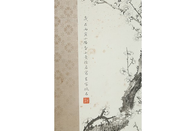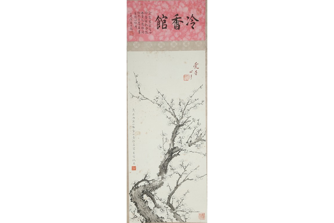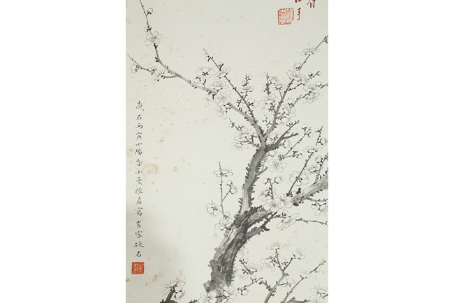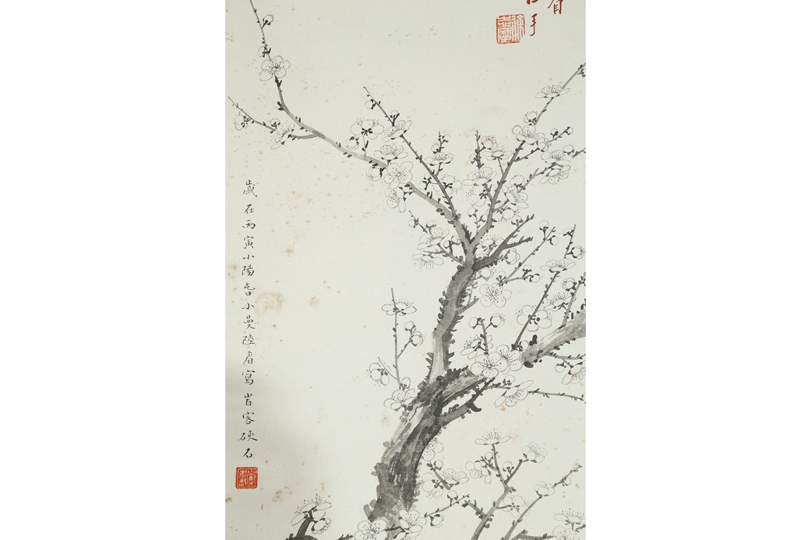 Ink on paper painting. Plum blossom. Hanging scroll. Inscribed and signed, with three seal marks. Lu Xiaoman (1903-1965)