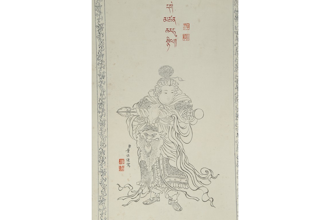 DONG HAO: INK ON PAPER PAINTING 董浩 韋陀 立軸 水墨紙本