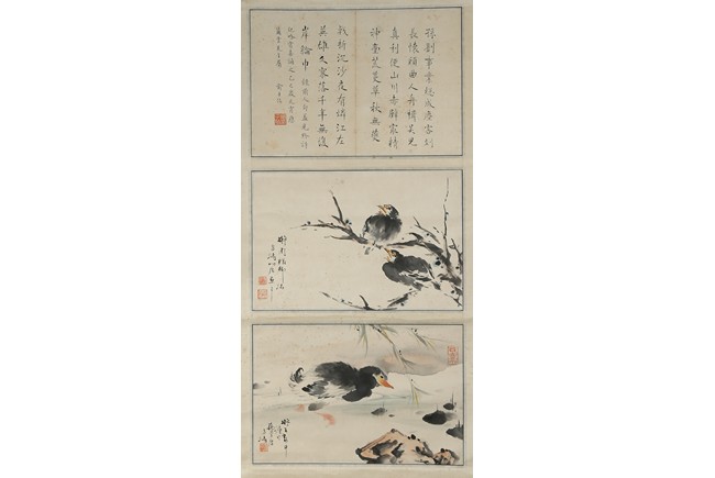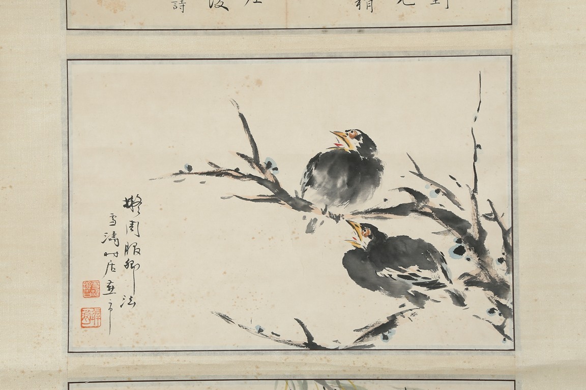 Color and ink on paper. Bird. Hanging scroll. Inscribed and signed, with four seal marks. Wang Xuetao (1903-1982)