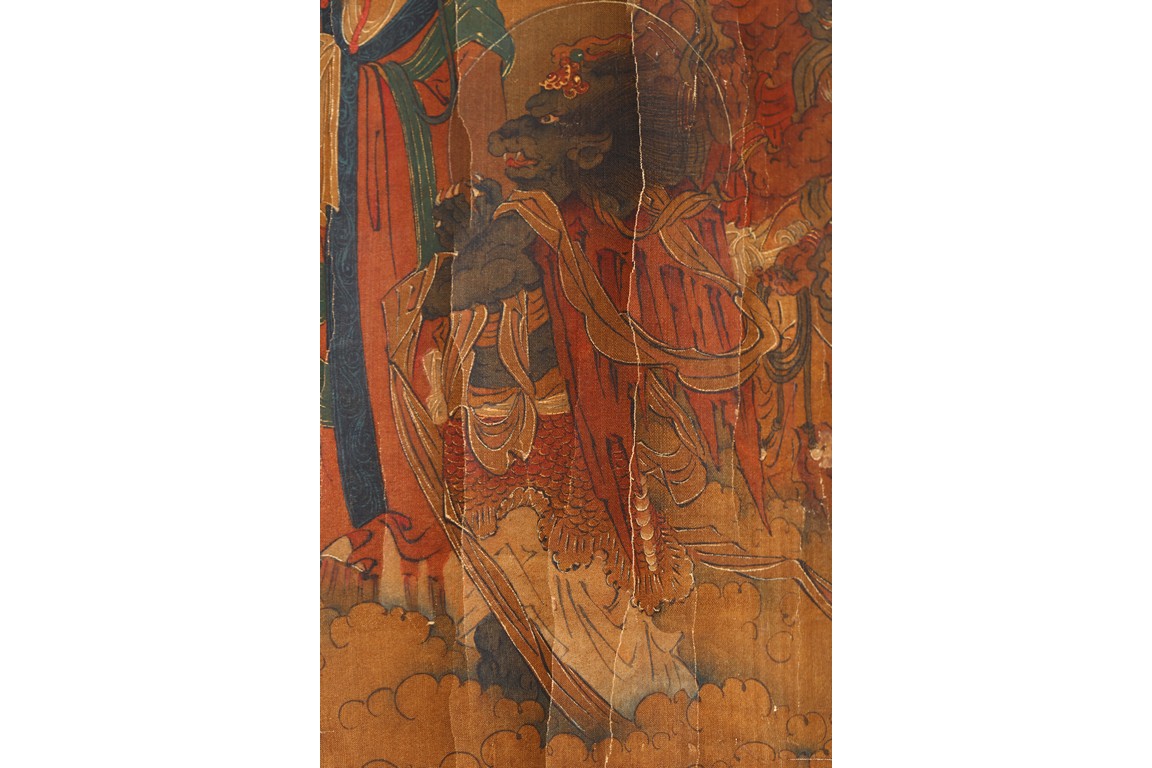 Color and ink on silk. Immortal. Mounted on paper.