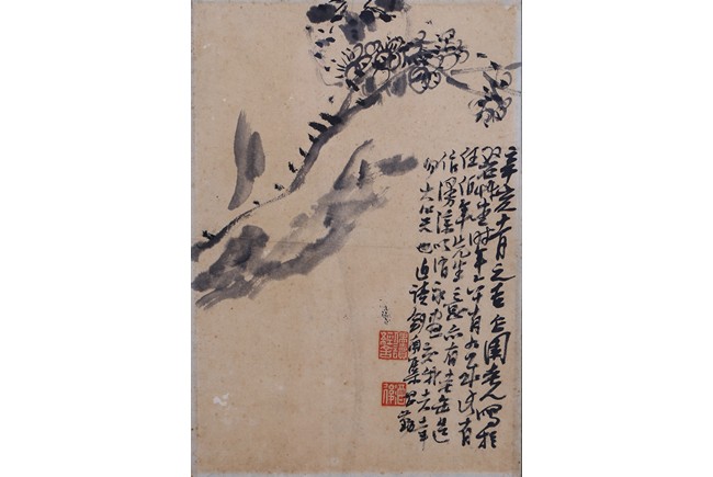 Ink on paper. Plum blossom. Inscribed and with two seals of the artist.