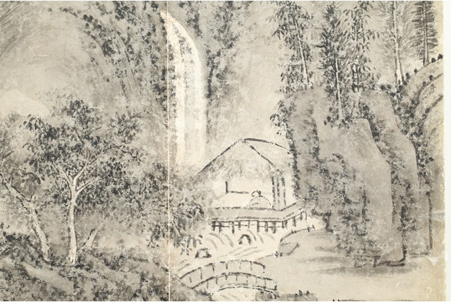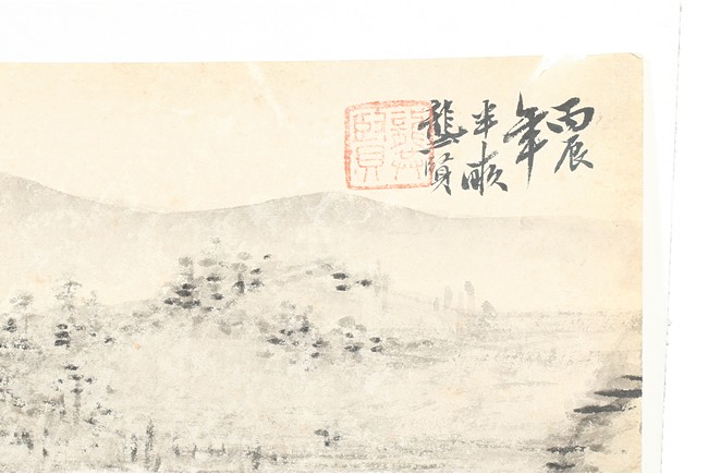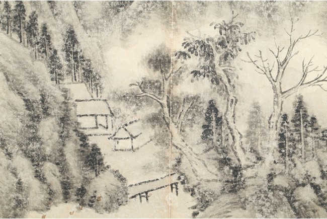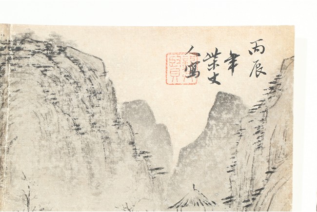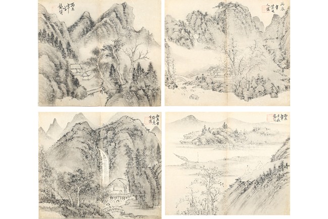 Ink on paper. Landscape. 4-leaf album. Inscribed and signed, with four seal marks. Gong Xian (1618-1689)