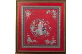 A FRAMED CHINESE SILK EMBROIDERY ‘QILIN AND FIGURE'