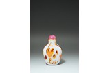 A TWO-COLOR OVERLAY WHITE GLASS SNUFF BOTTLE