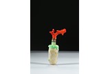 清 翡翠雕鼻煙壺 配原裝珊瑚蓋