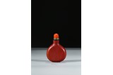 A RED GLASS SILVER INLAID SNUFF BOTTLE