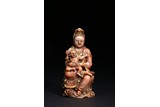 清 壽山石泥金送子觀音坐像