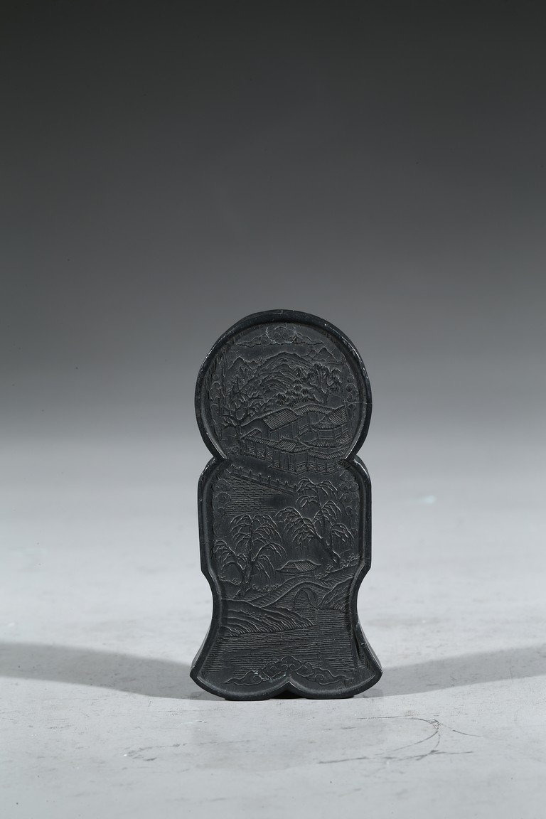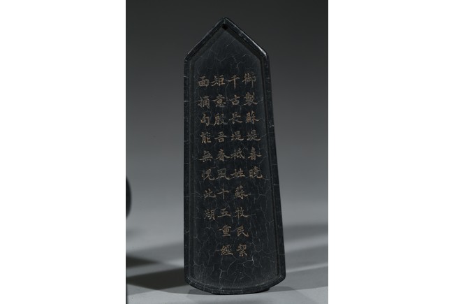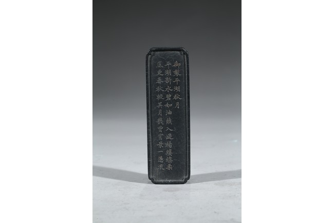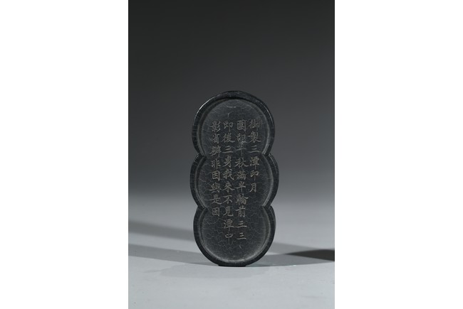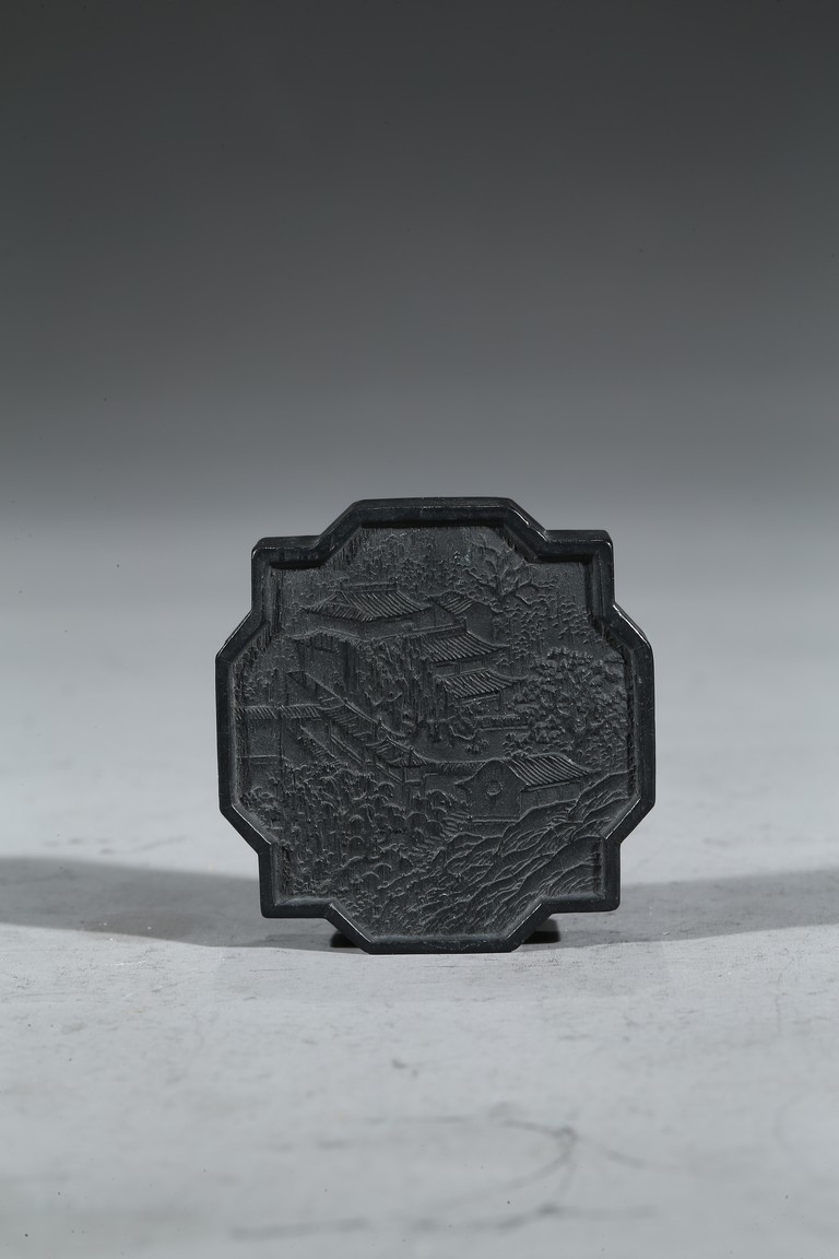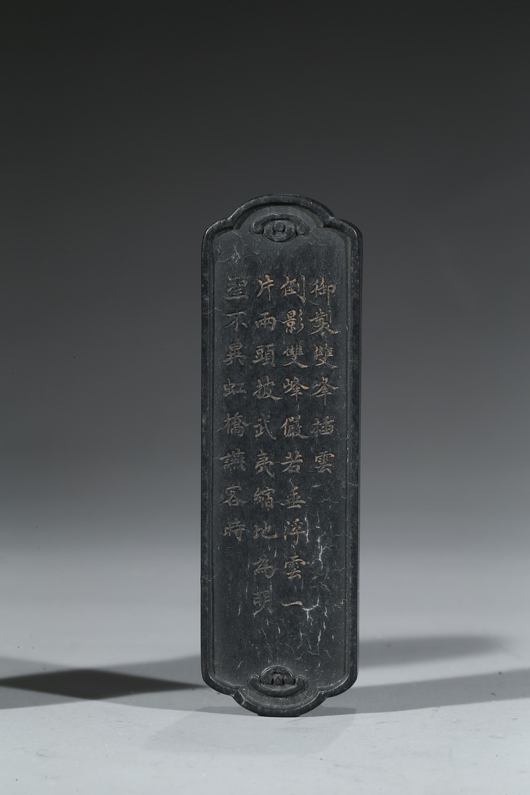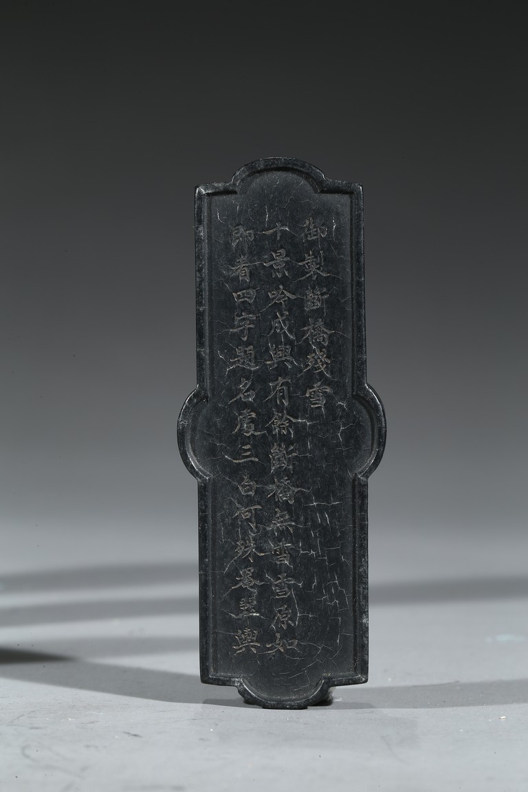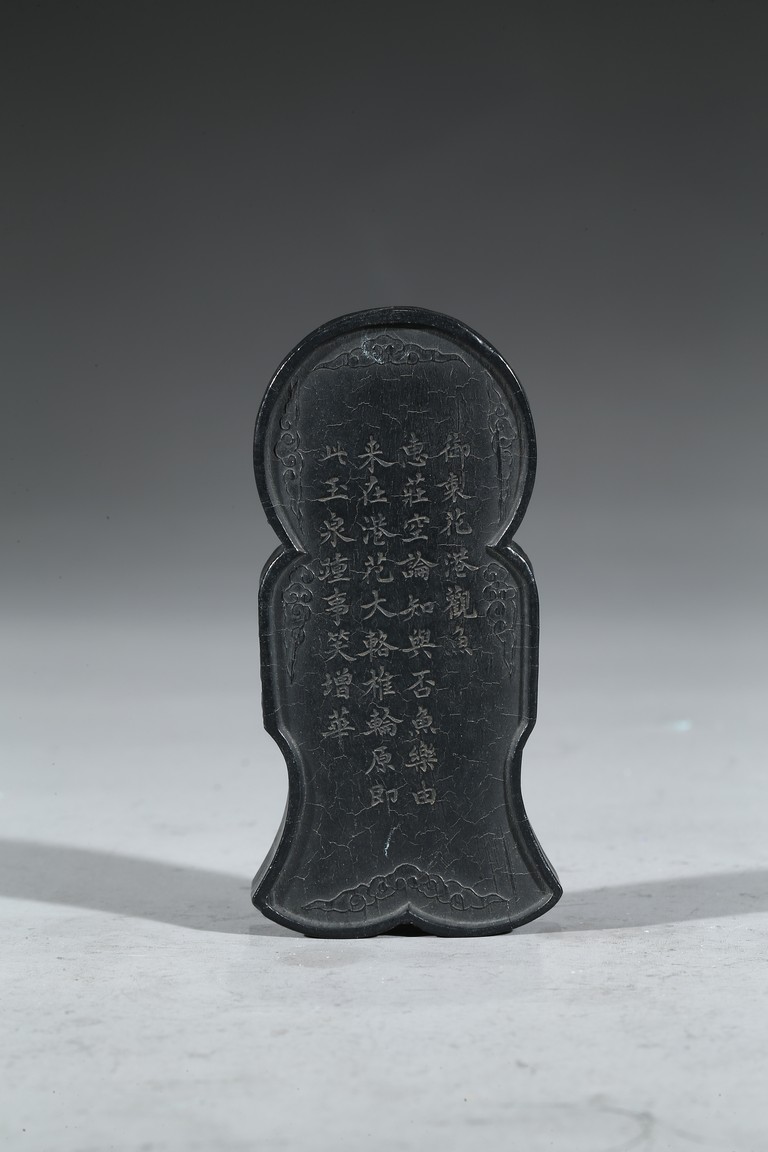 Comprising of ten inkcakes moulded in various shapes, all inscribed in Imperial poems and further inscribed on the sides of each inkcake. Qing Dynasty period.