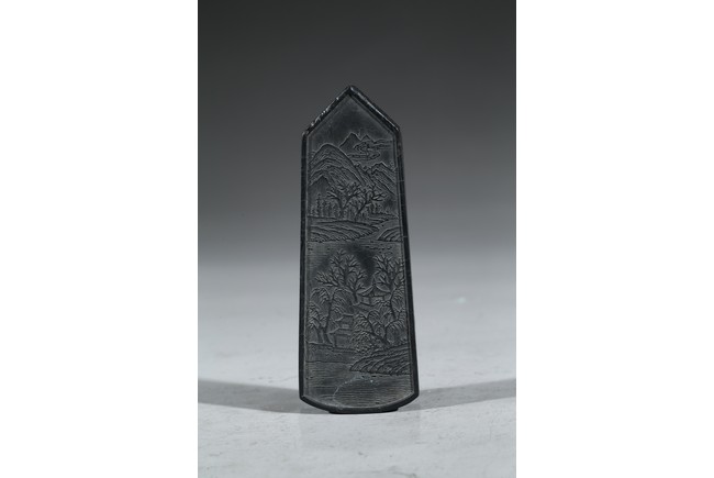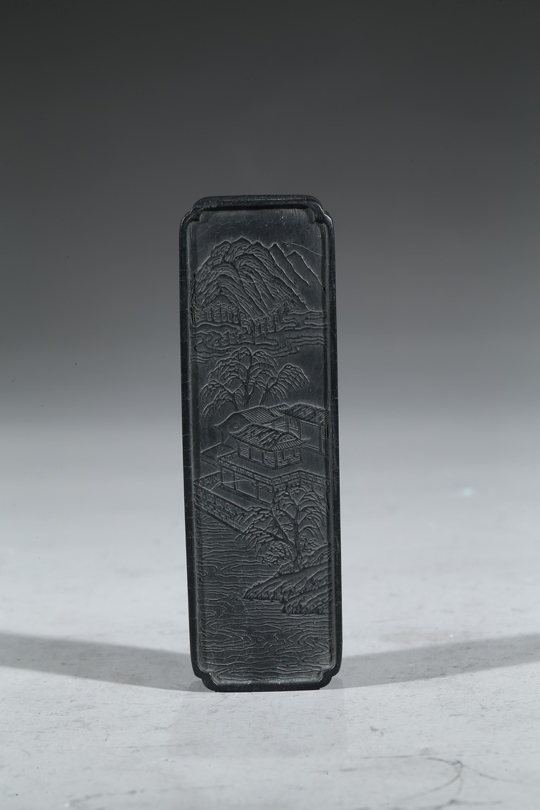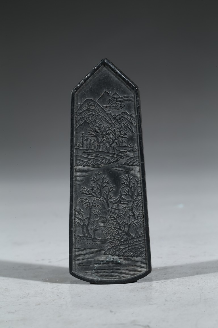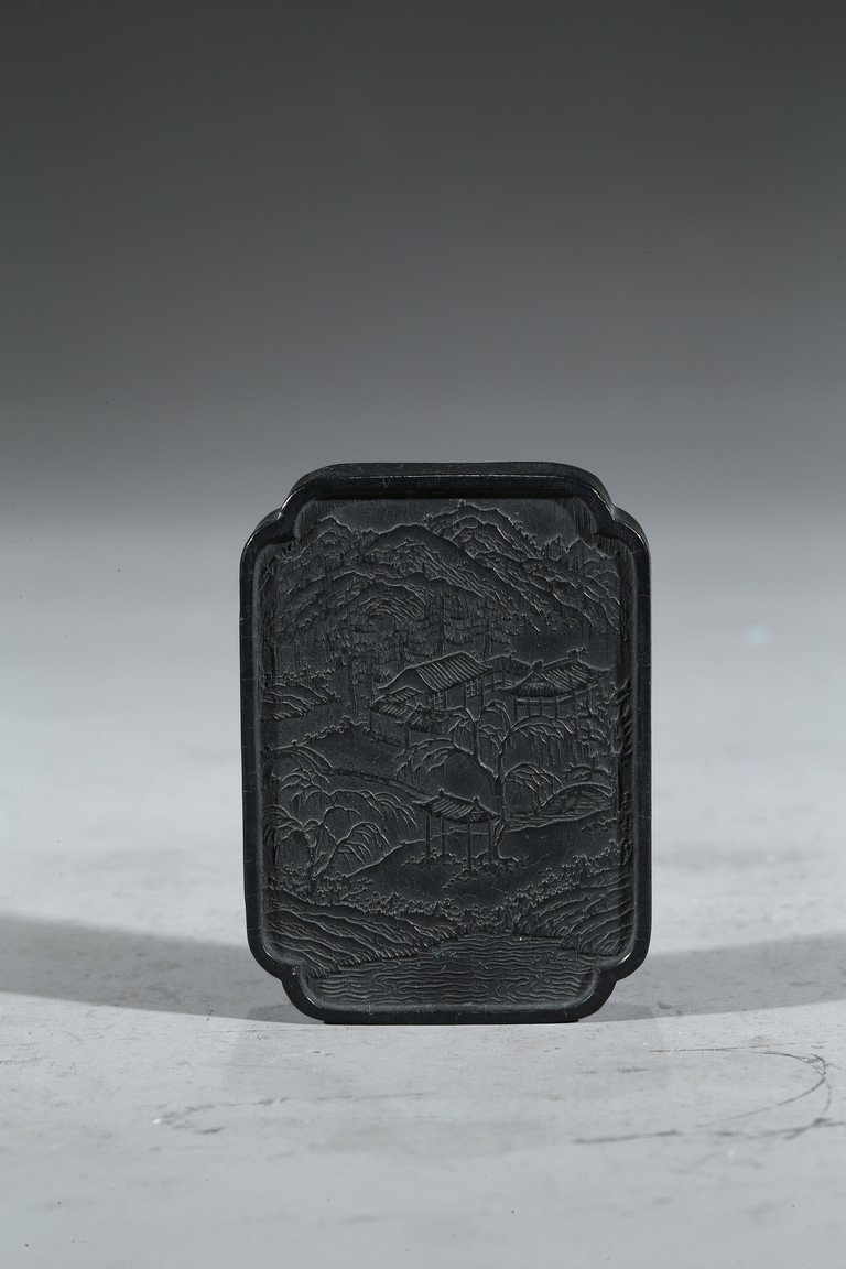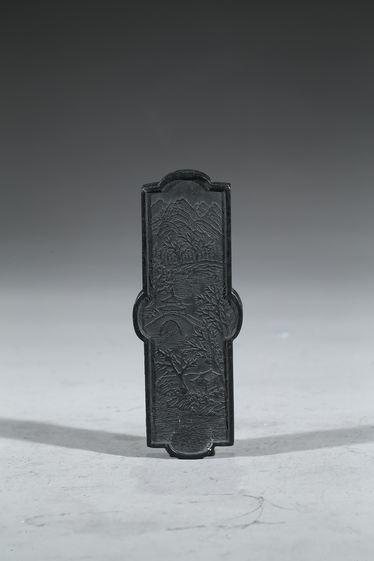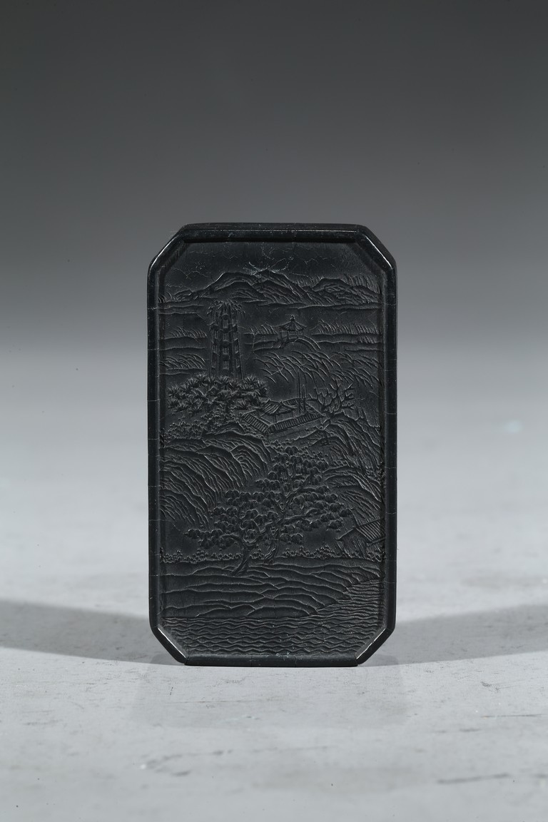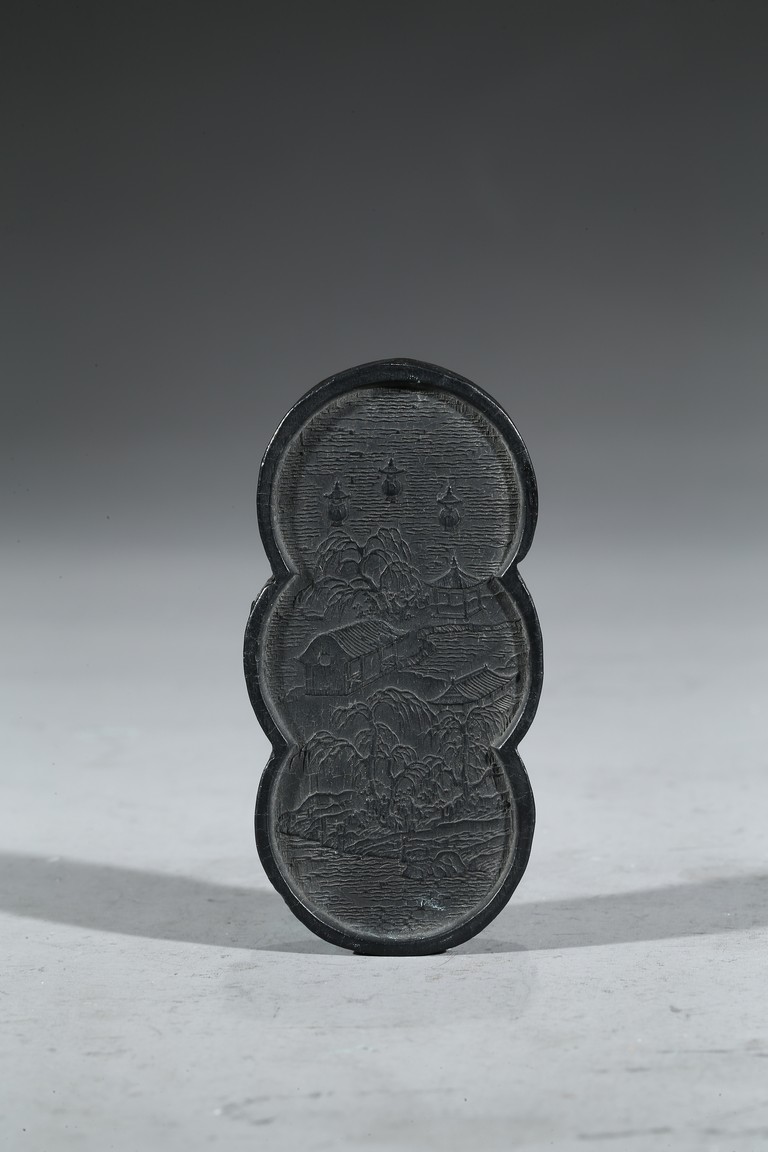Comprising of ten inkcakes moulded in various shapes, all inscribed in Imperial poems and further inscribed on the sides of each inkcake. Qing Dynasty period.