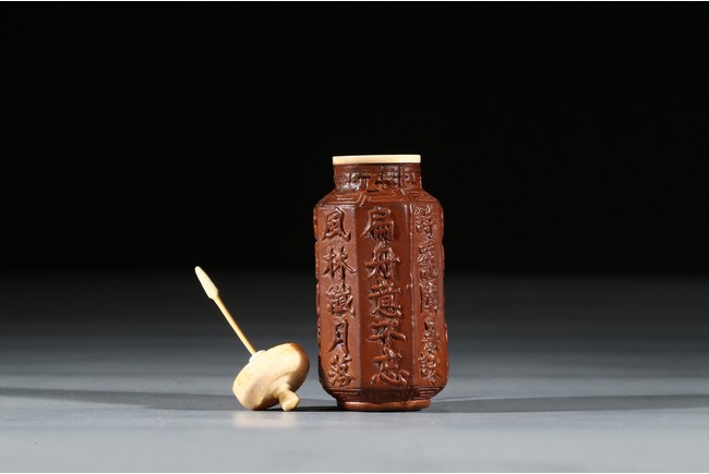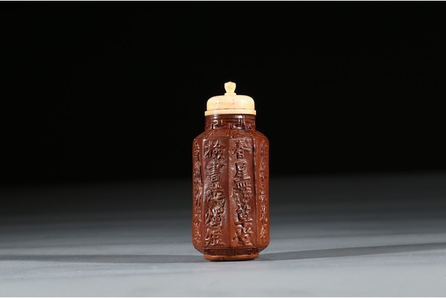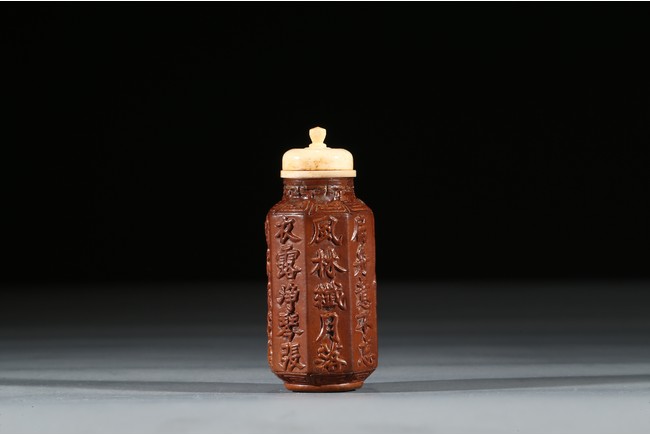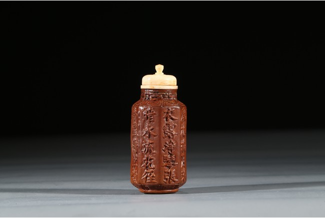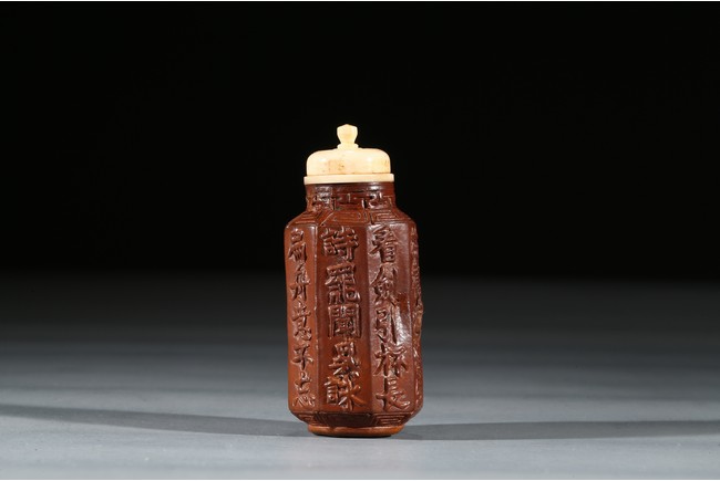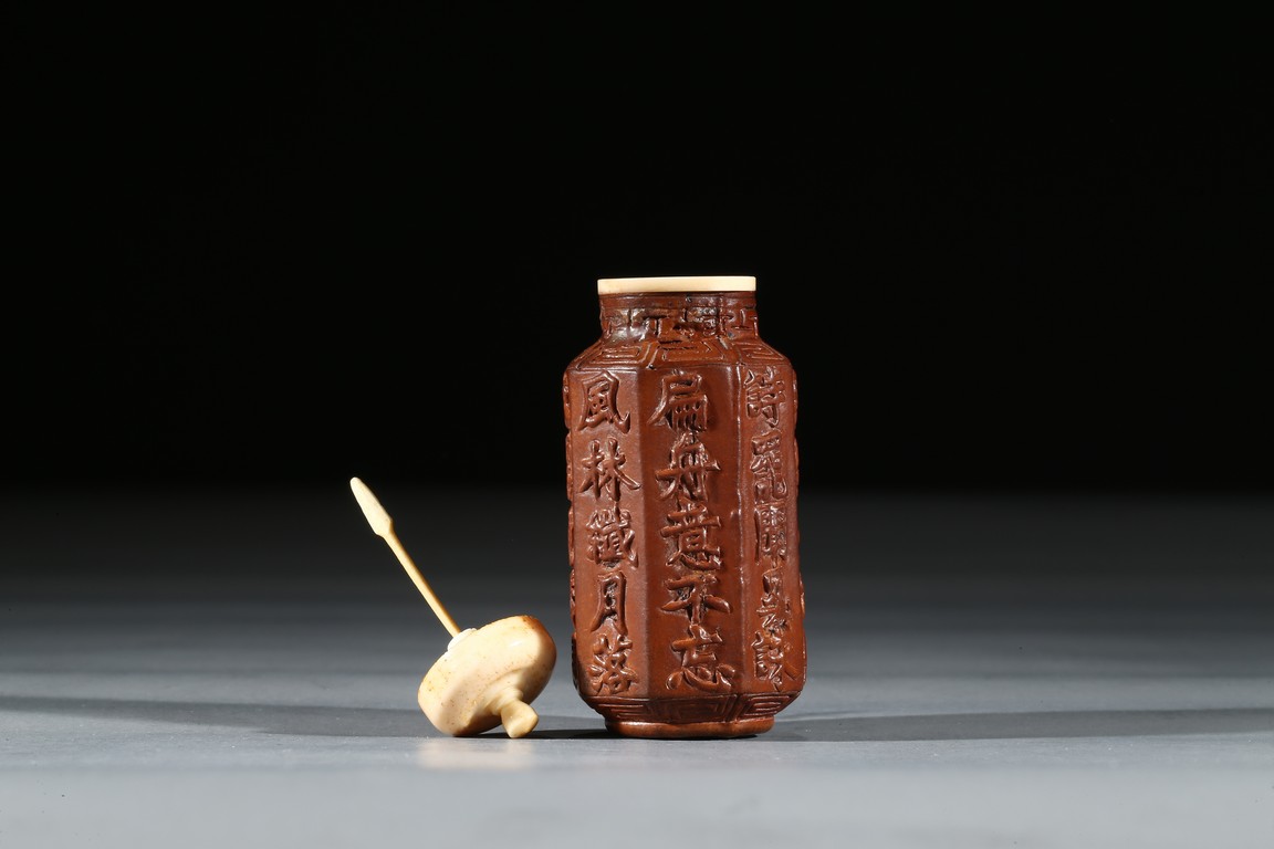 A GOURD CARVED 'POEM' SNUFF BOTTLE 清 匏器詩文鼻煙壺