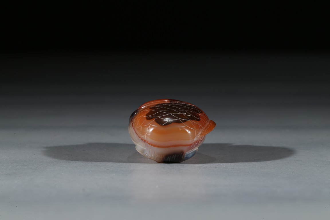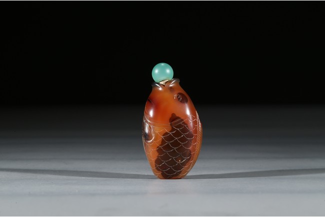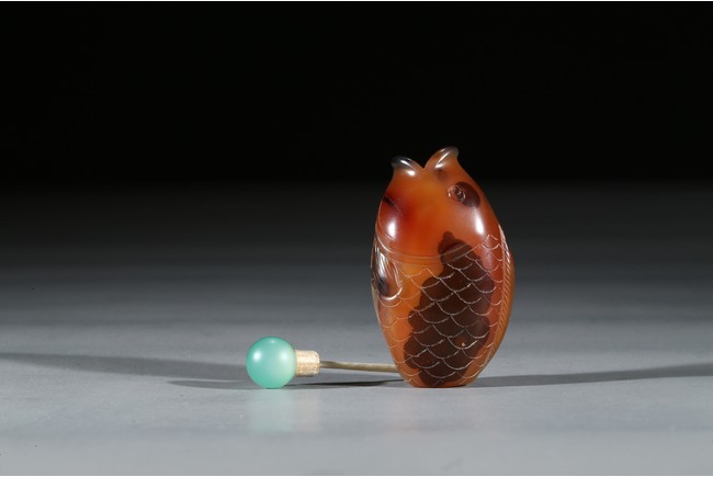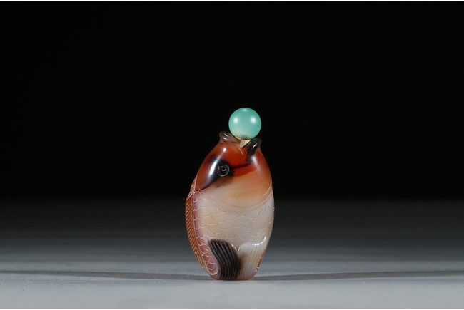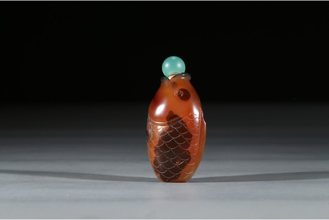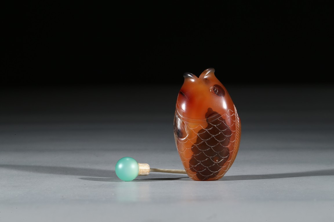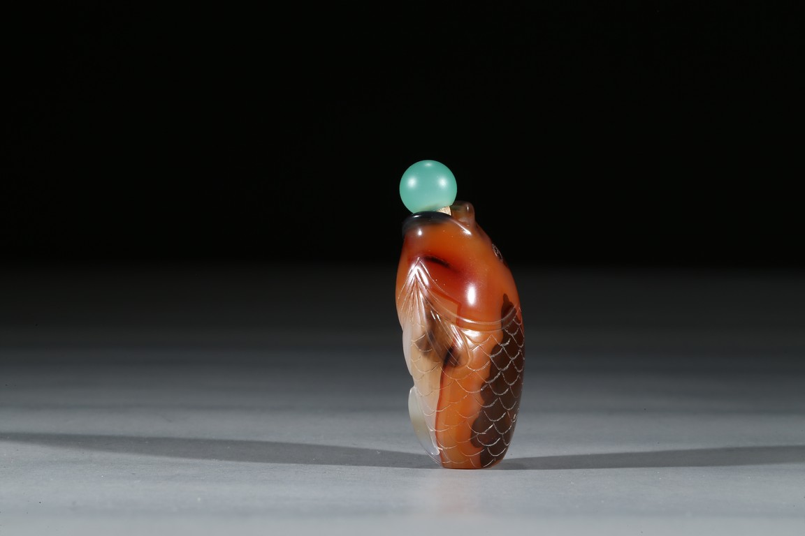 AN AGATE CARVED FISH SNUFF BOTTLE 清 瑪瑙巧雕魚鼻煙壺