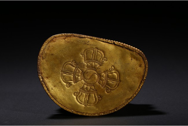 菩薩面相慈祥,微含笑意,頭戴彎月形寶冠,裝飾華美,雍容華貴。雙耳掛大耳璫,項戴纓絡項鏈,肩搭披帛,質地輕薄,衣紋流暢,如行雲流水。袒露上身,下身著裙。雙手置胸前,各持蓮花。整體造型精美,比例勻稱,動態舒展,線條流暢,金色飽滿悅目,富麗堂皇,代表了明代佛像的最高水平,具有極高的藝術性。