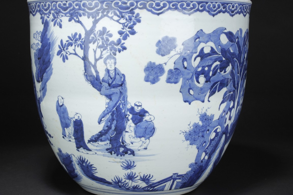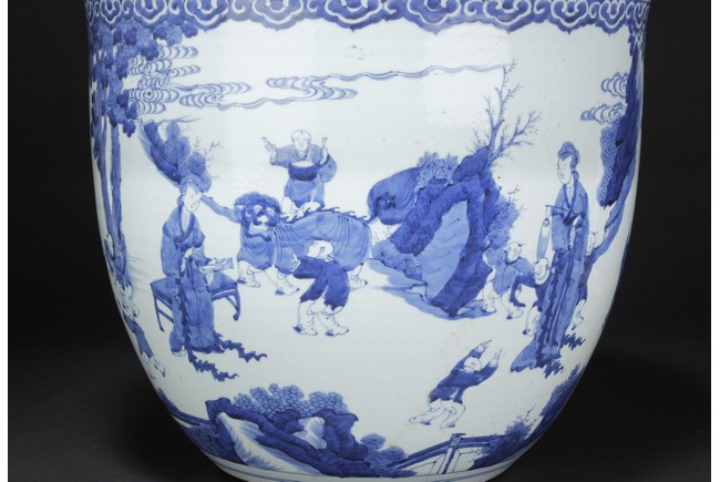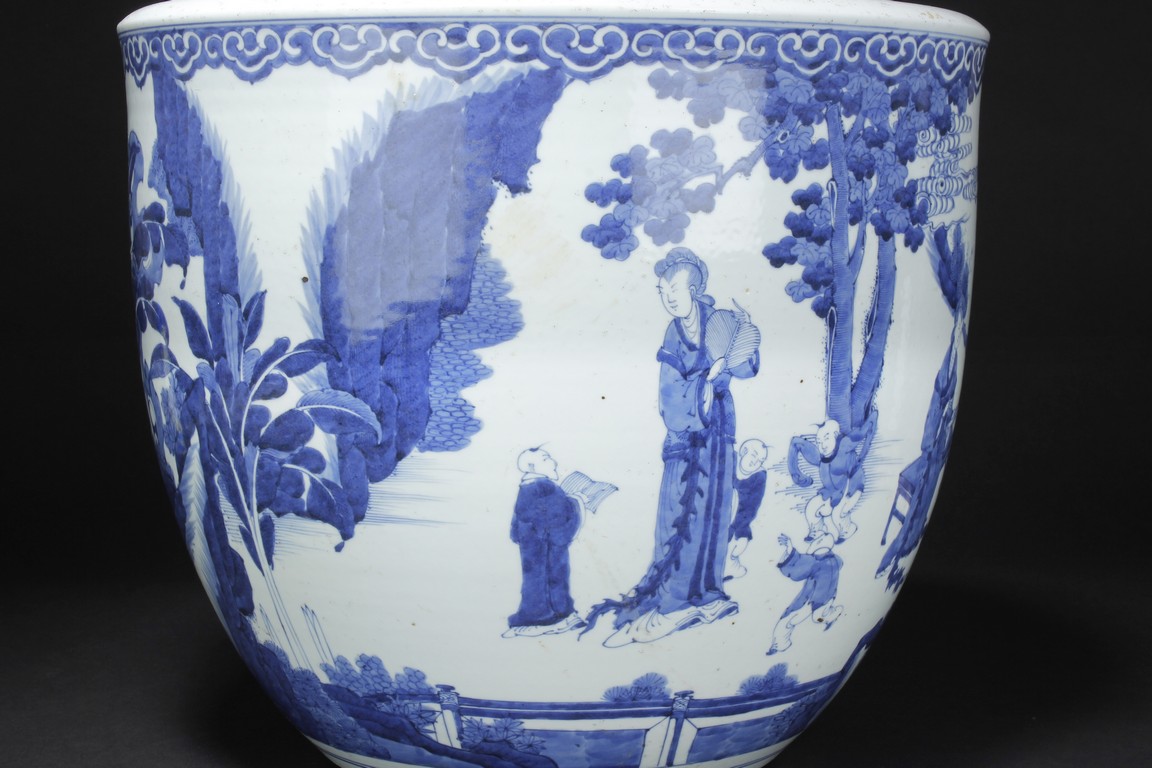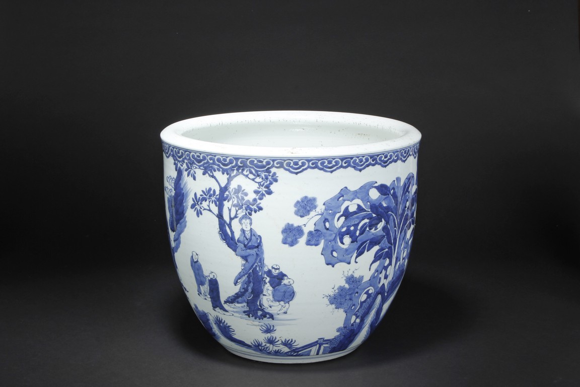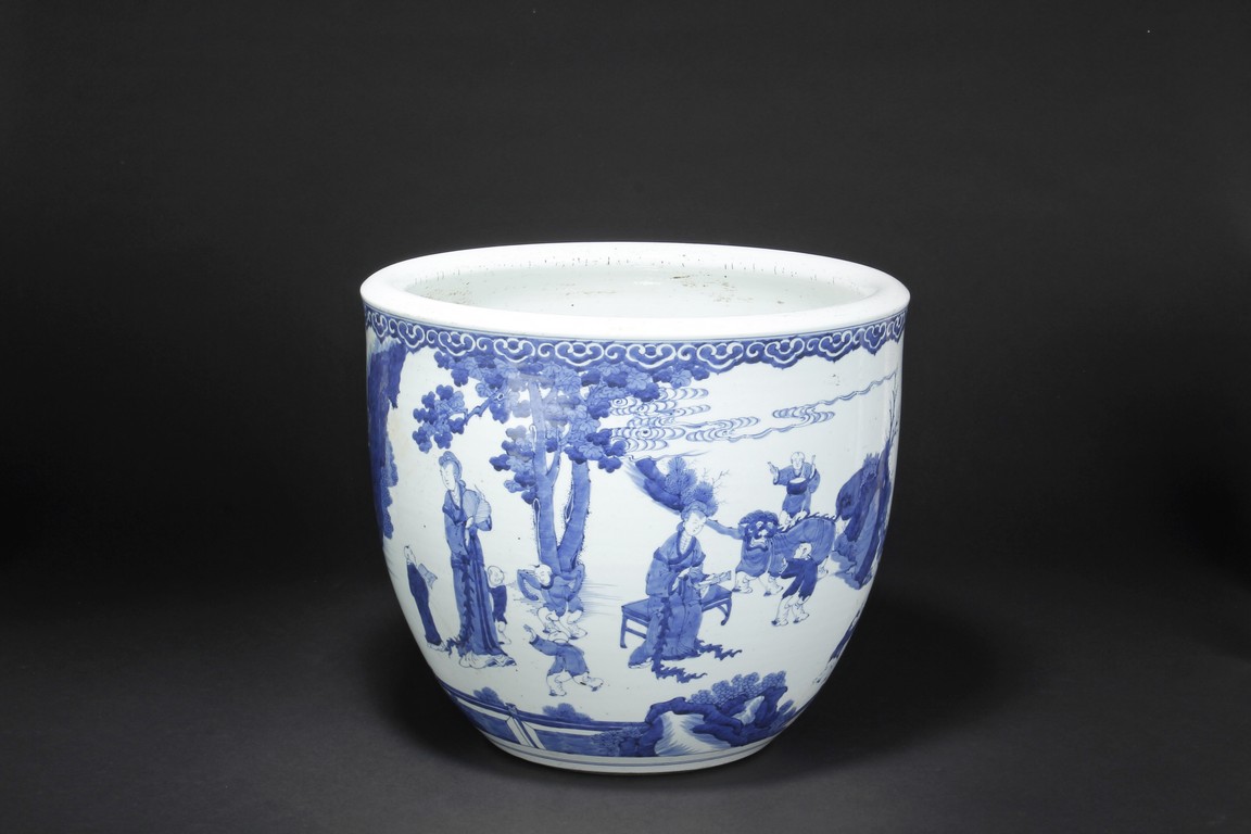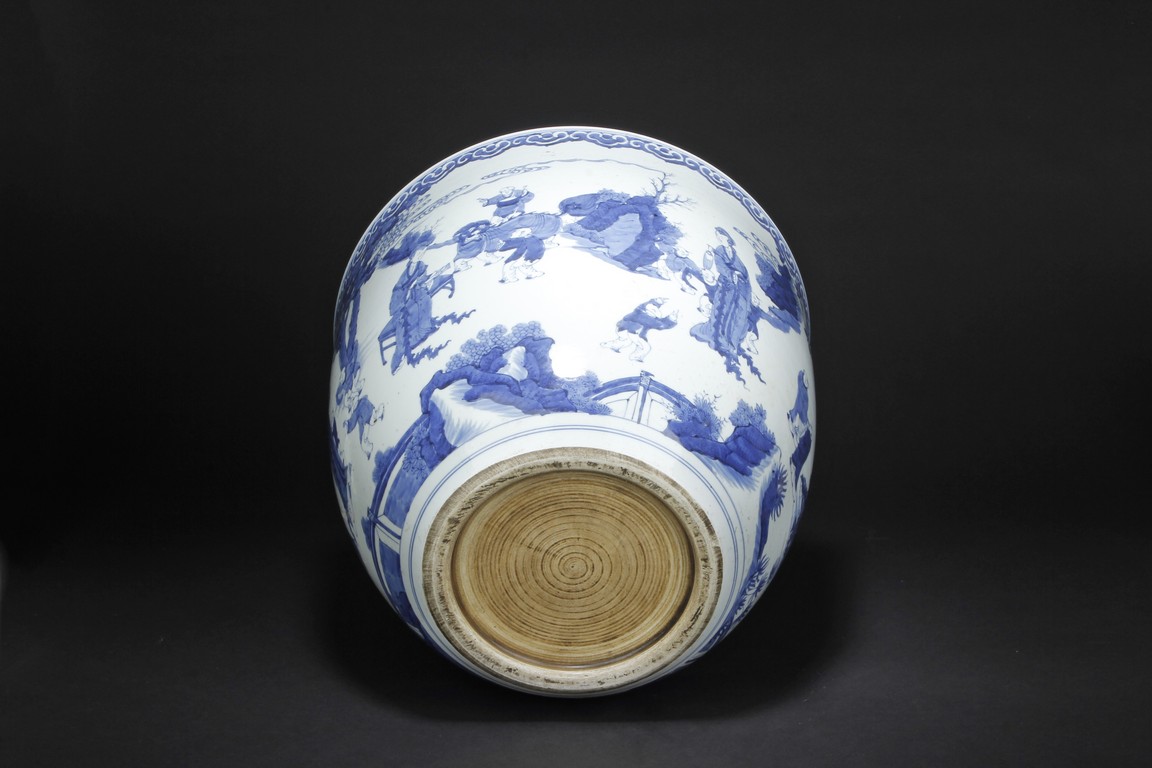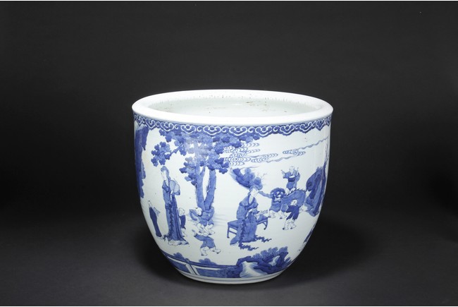 Of rounded shoulders,the exterior finely painted with story scene including ladies accompanied by their kids playing in a garden setting. Qing Dynasty period.