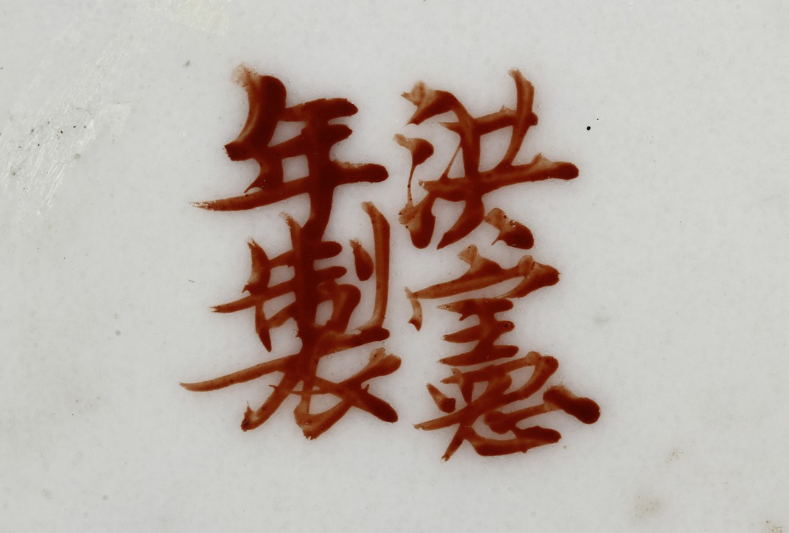 The body is decorated with foliage patterns reserved on white ground, the nek decorated with a continuous ruyi band. The bottom bears four character 'Hongxian' mark. Republic Period.
