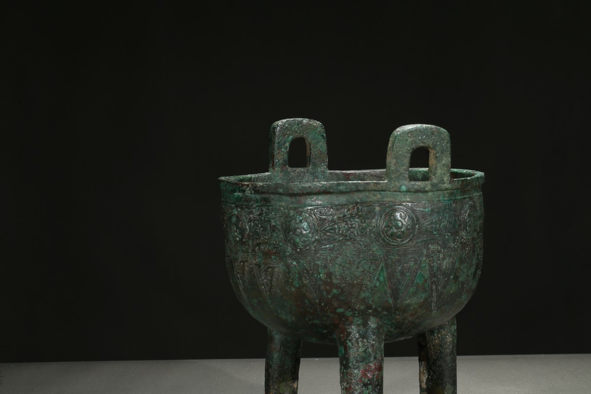 Please refer to a similar bronze tripod ding sold in Christie's New York, on March 20, 2014, Lot 2009 參考紐約佳士得2014年3月20日拍賣青銅蟬渦紋鼎, 拍品號2009.