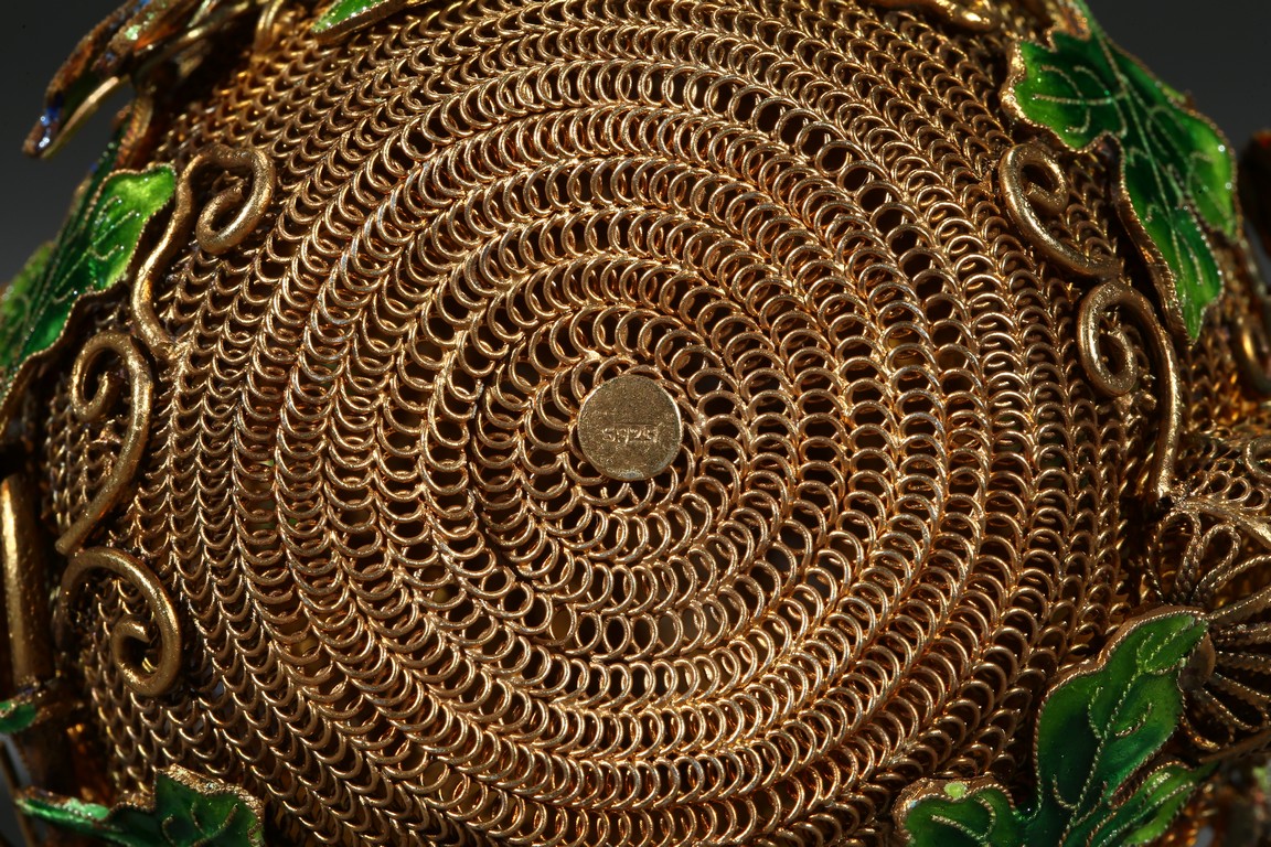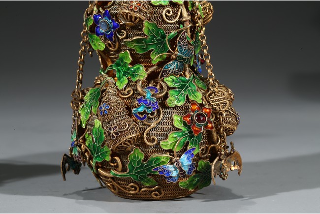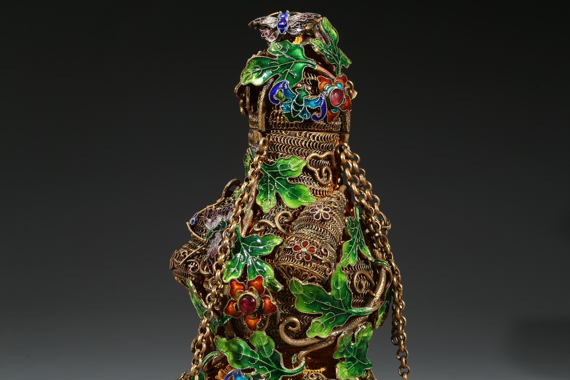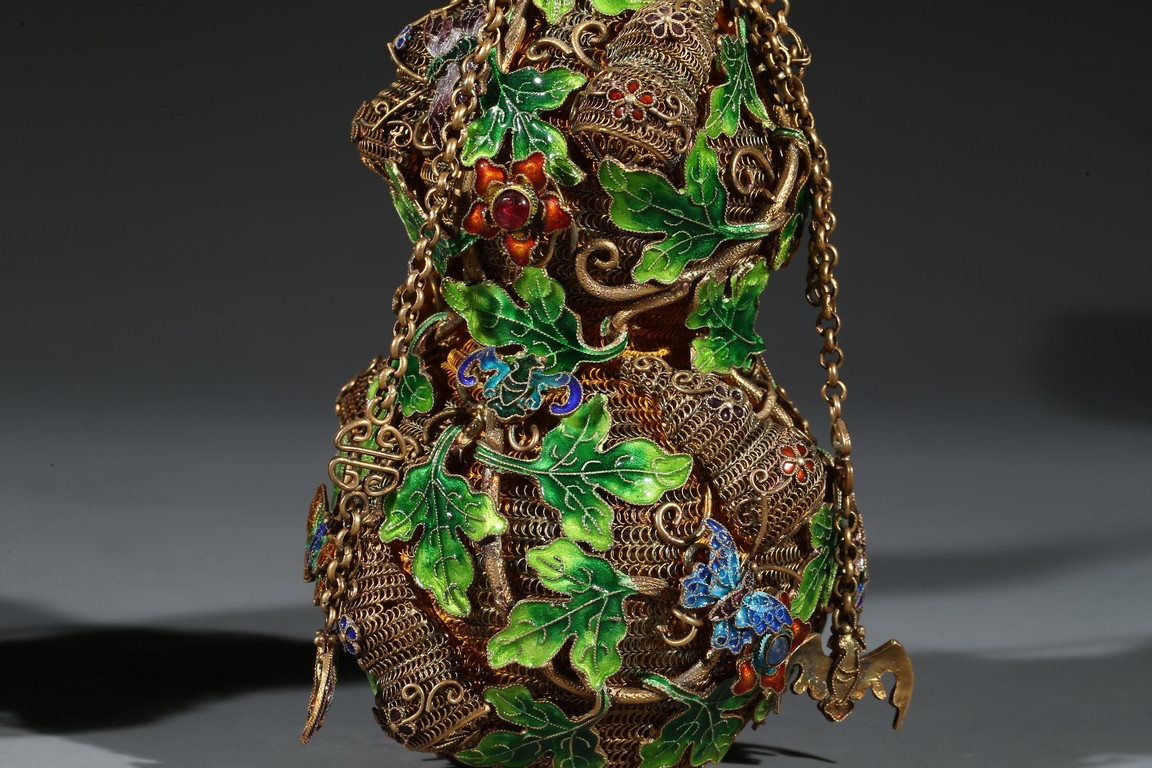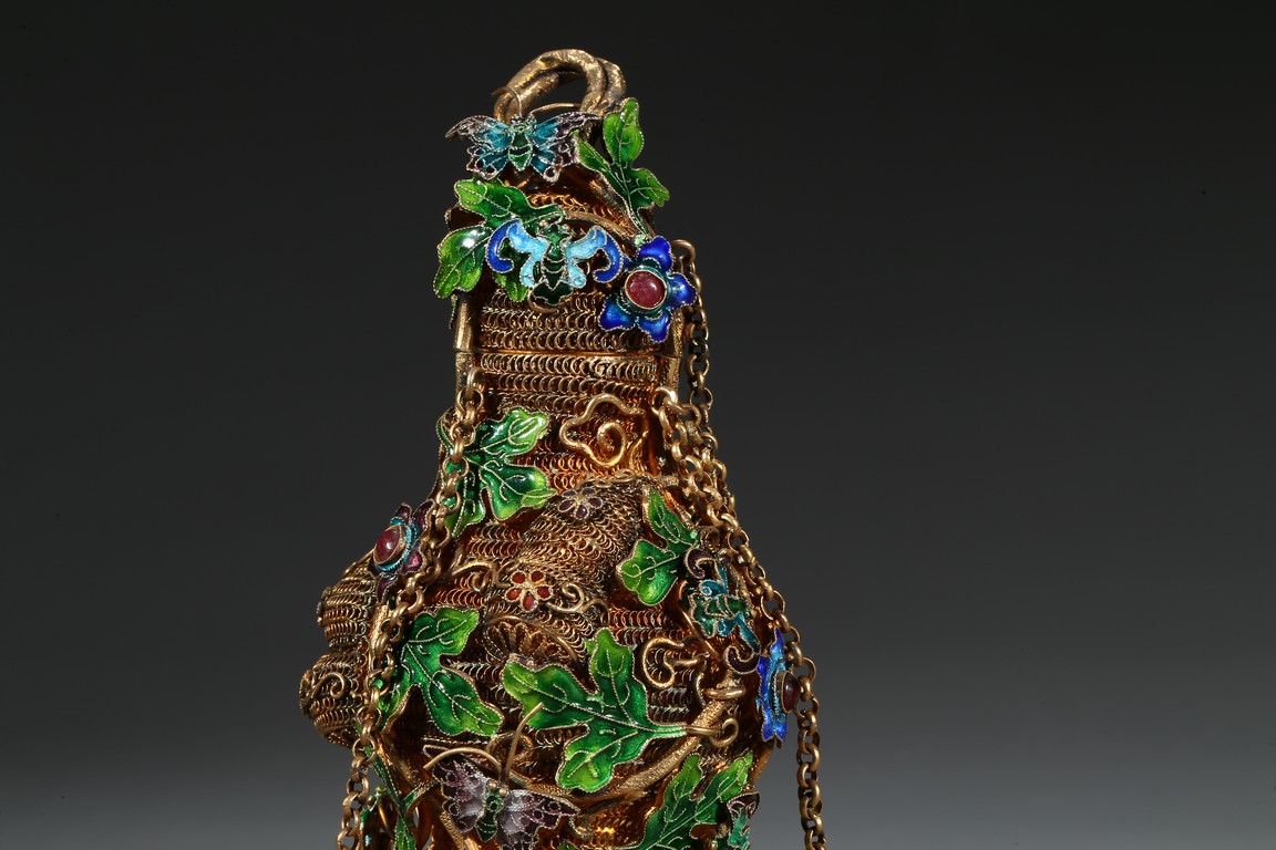 A PAIR OF SILVER GILT ENAMEL FILIGREE DOUBLE GOURD VASES 清 銀鎏金琺瑯葫蘆蓋瓶一對