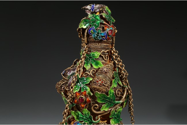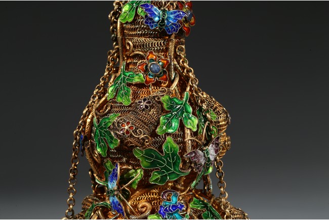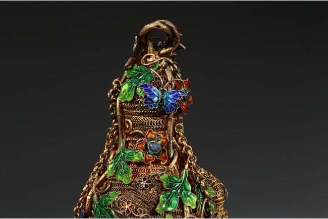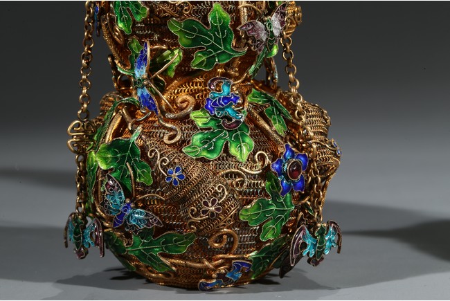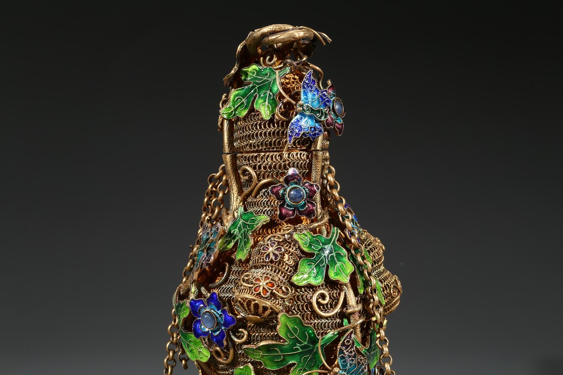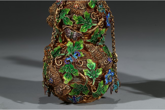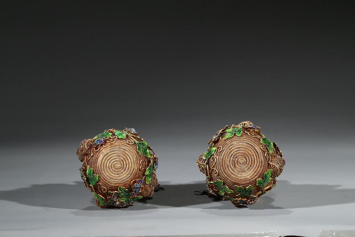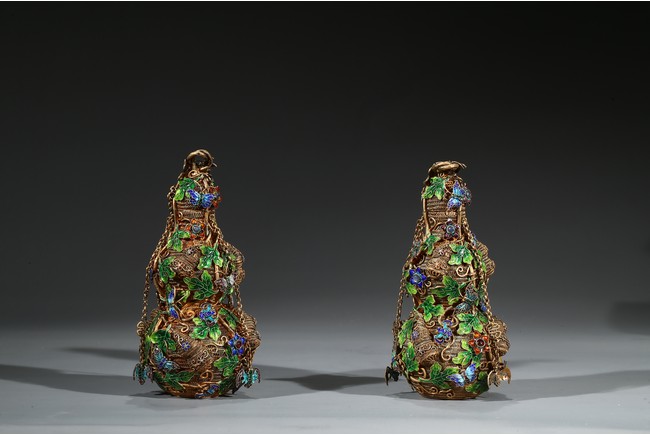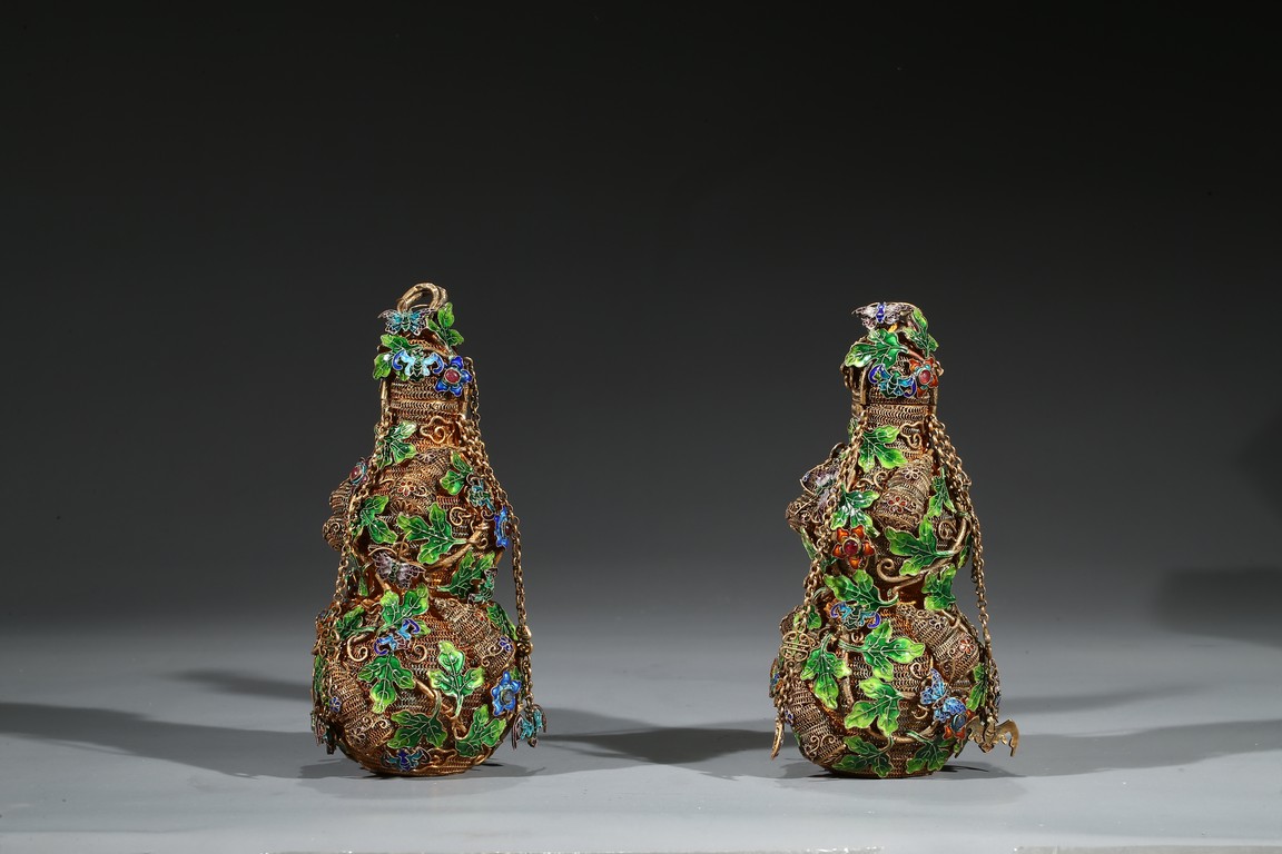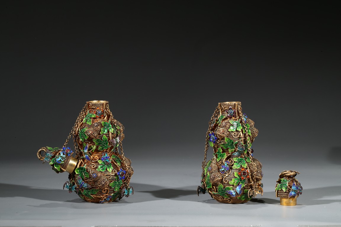Each of double gourd form and enamelled on gilt-silver wire ground. Qing Dynasty period.