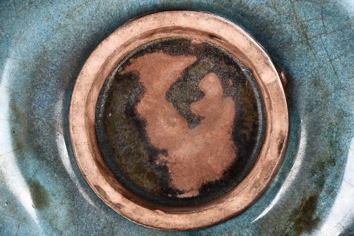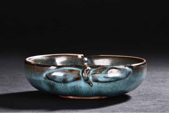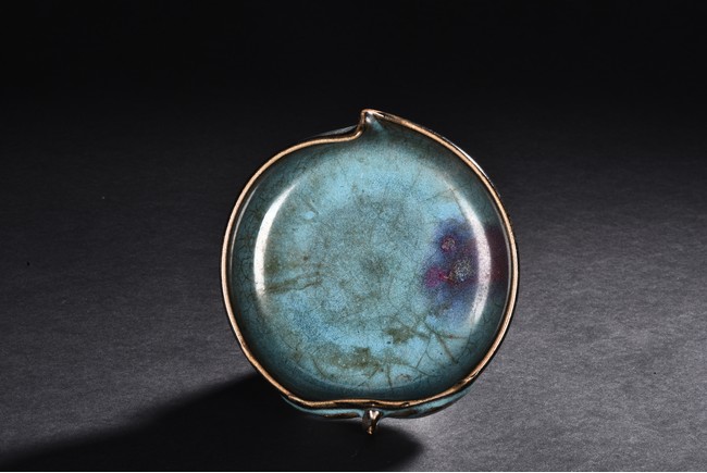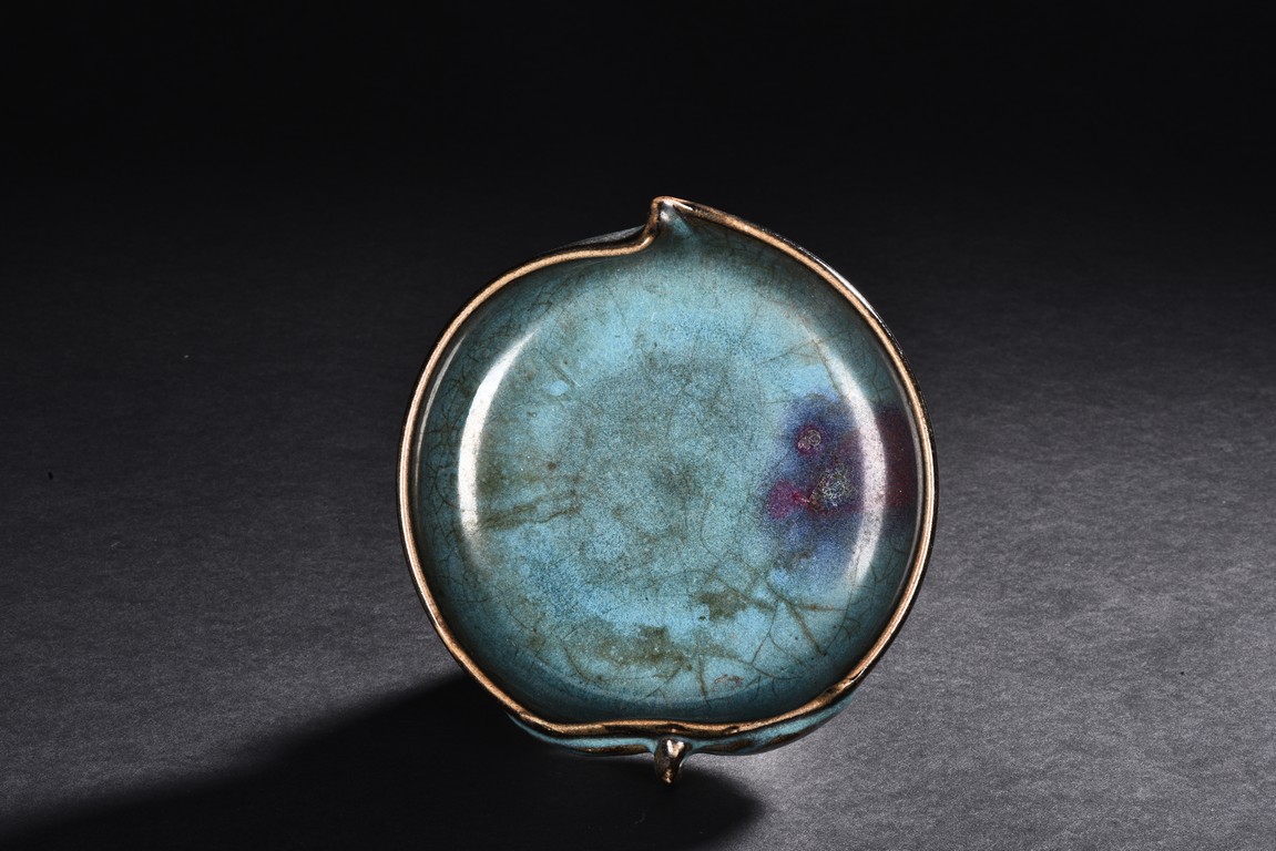A PEACH SHAPED JUN KILN WASHER 明 仿鈞窯桃形水洗