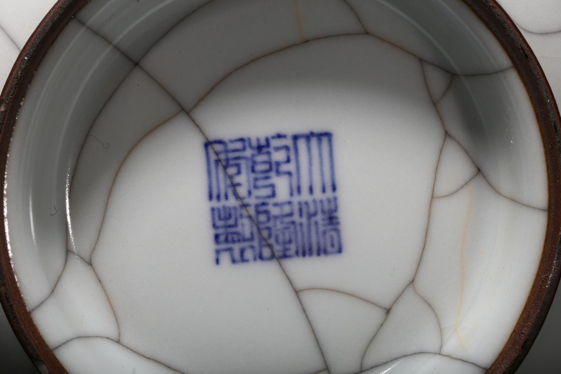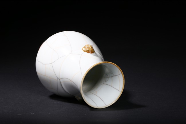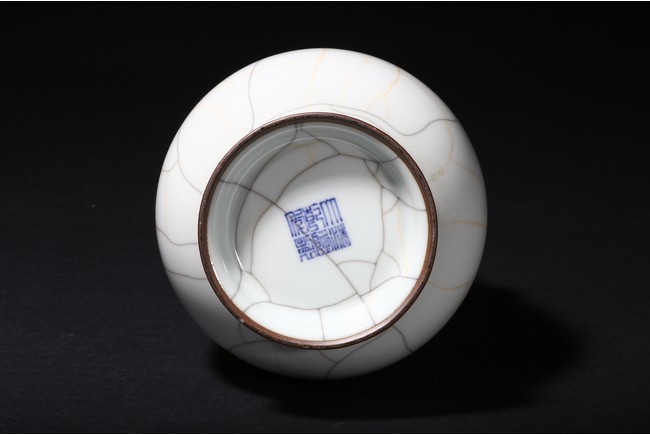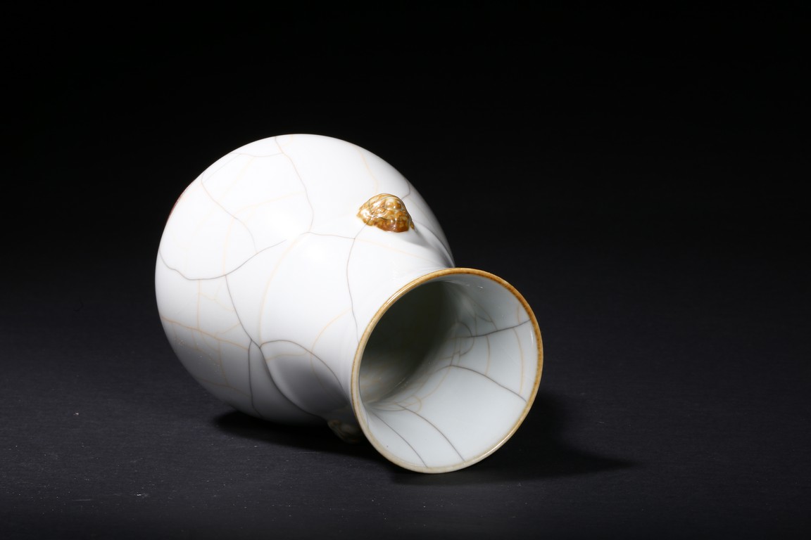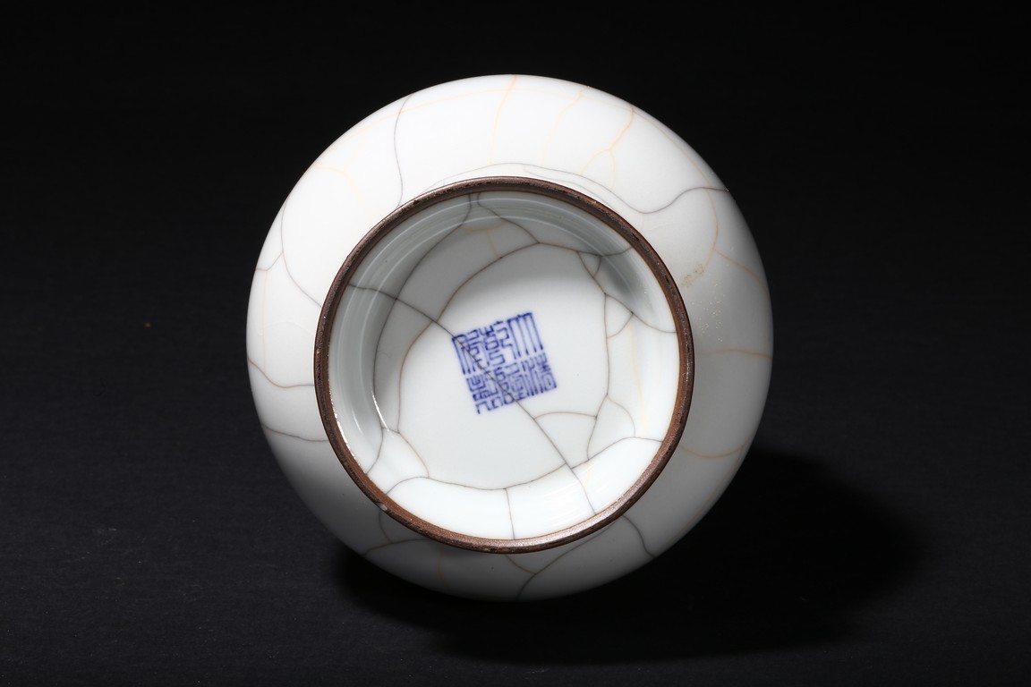Provenance: Private Hawaii collection, California 哥窯為五大名窯之一,後世多有仿製,此件器物為清代仿哥窯作品,侈口,垂肩,鼓腹,高圈足,飾雙獅耳。釉色灰白,施釉色厚潤猶如凝脂,寶光內藴,周身紋片緻密,饒有韻致。夏威夷日本著名藏家前田家族收藏