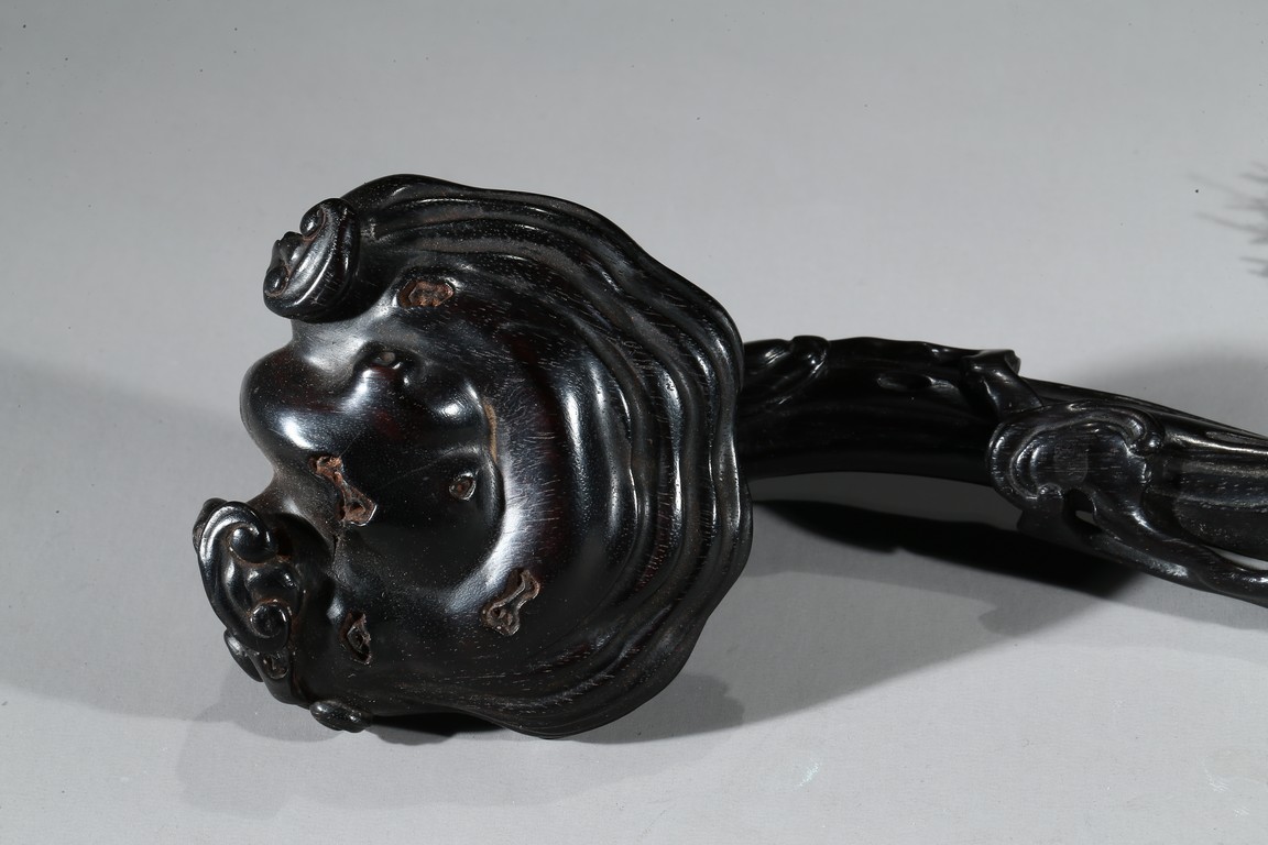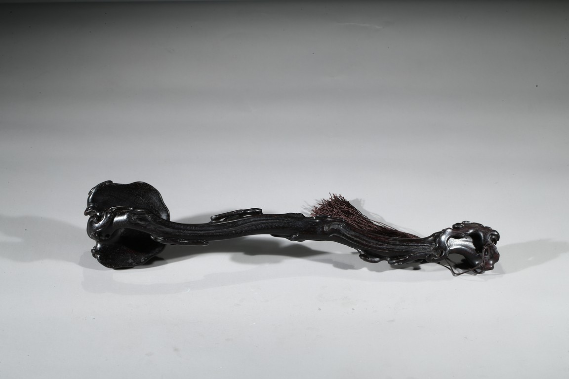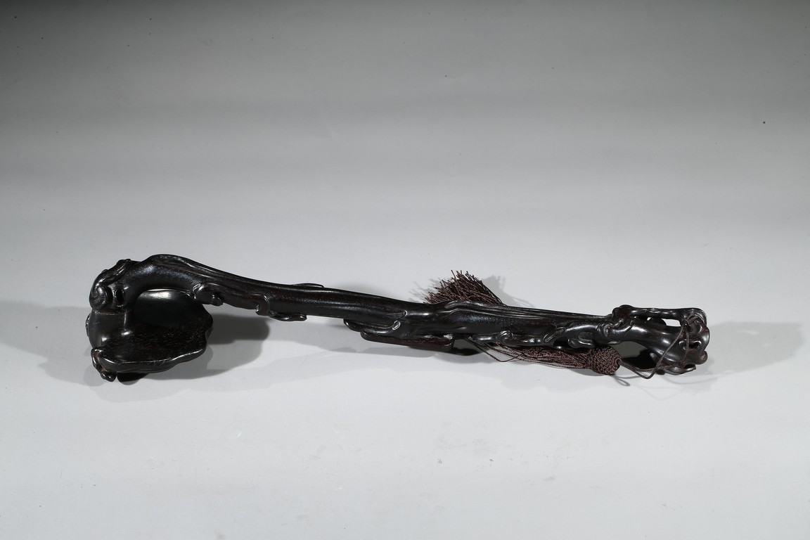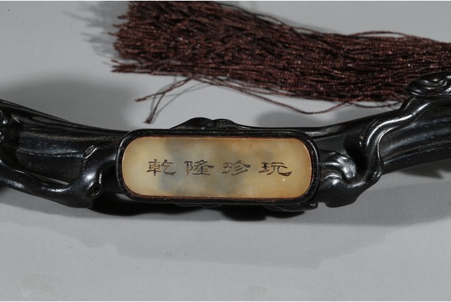 Carved in the form of lingzhi branch, the center inlaid with a mother of pearl piece carved with four Chinese characters 'Qianlong' mark. Qing Dynasty Period.
