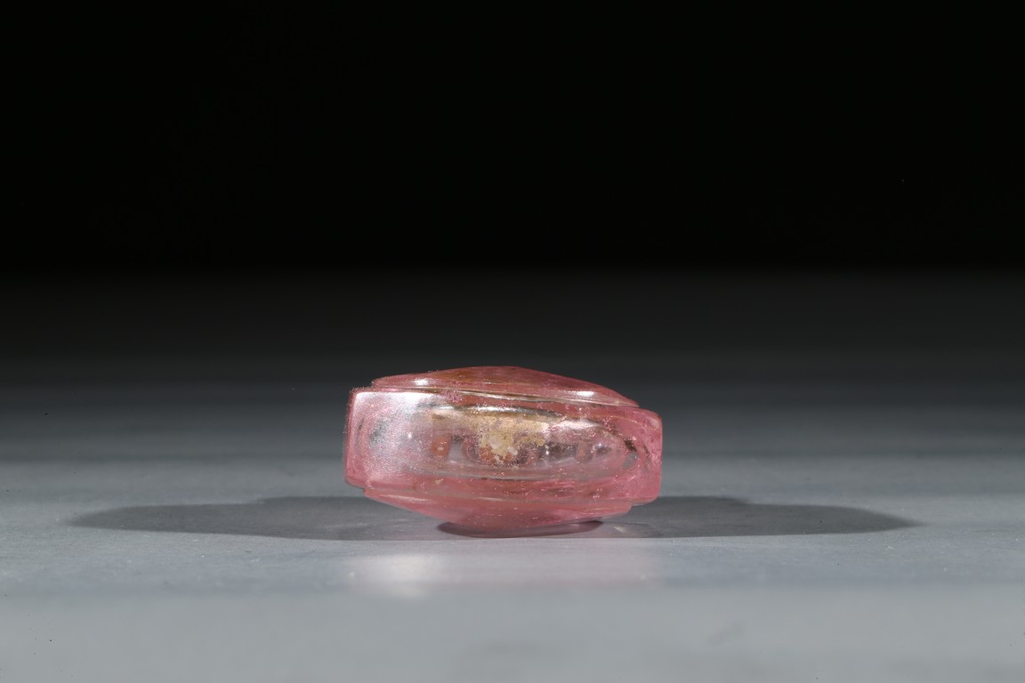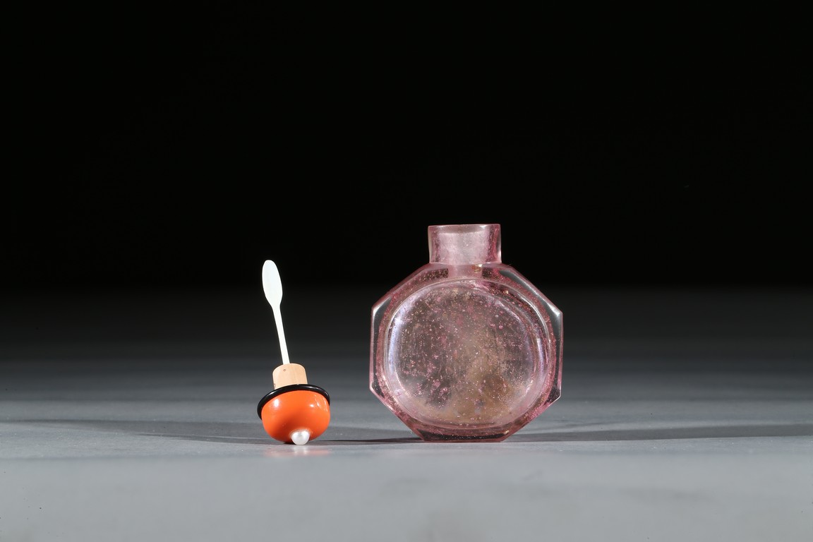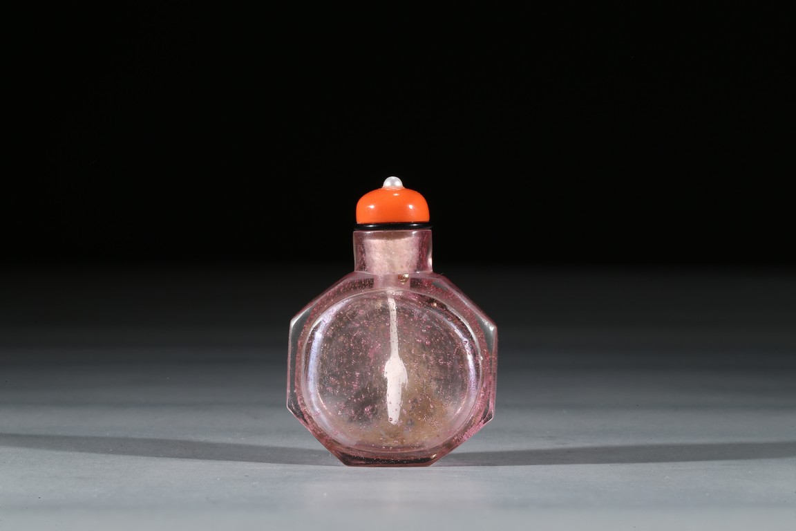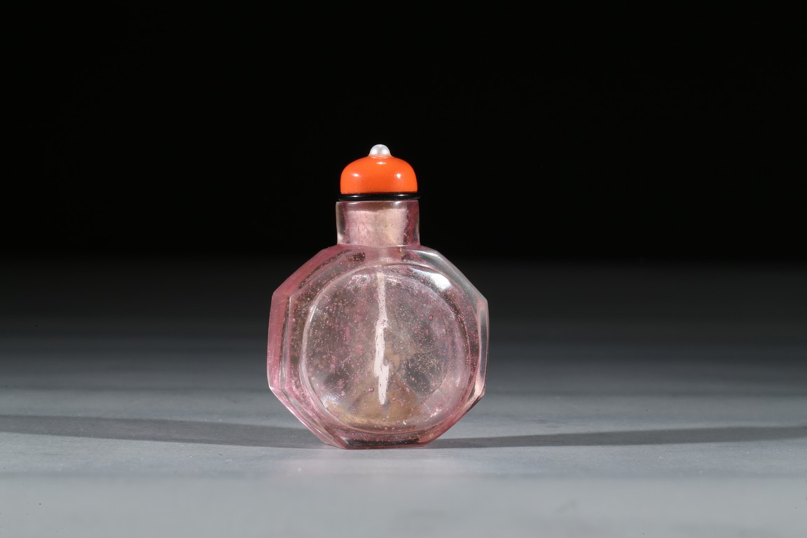A TRANSPARENT PINK SNUFF BOTTLE 清 粉色多棱形鼻煙壺