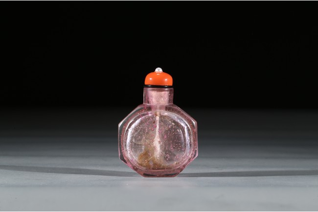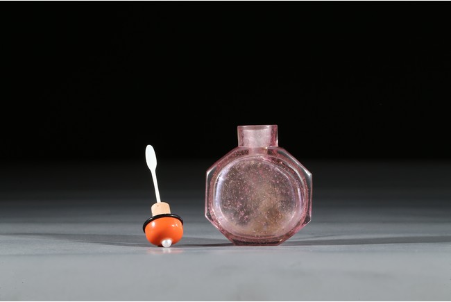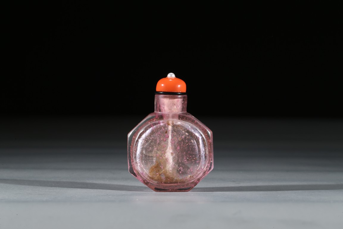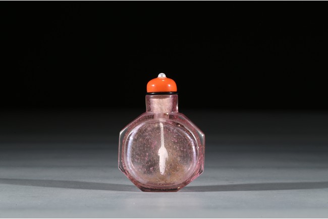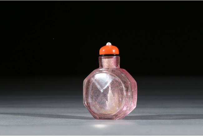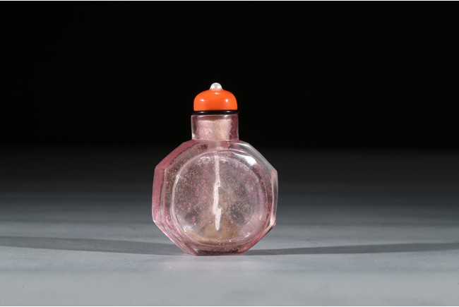 Of transparent pink tone and faceted shaped, with stopper. Qing Dynasty period.