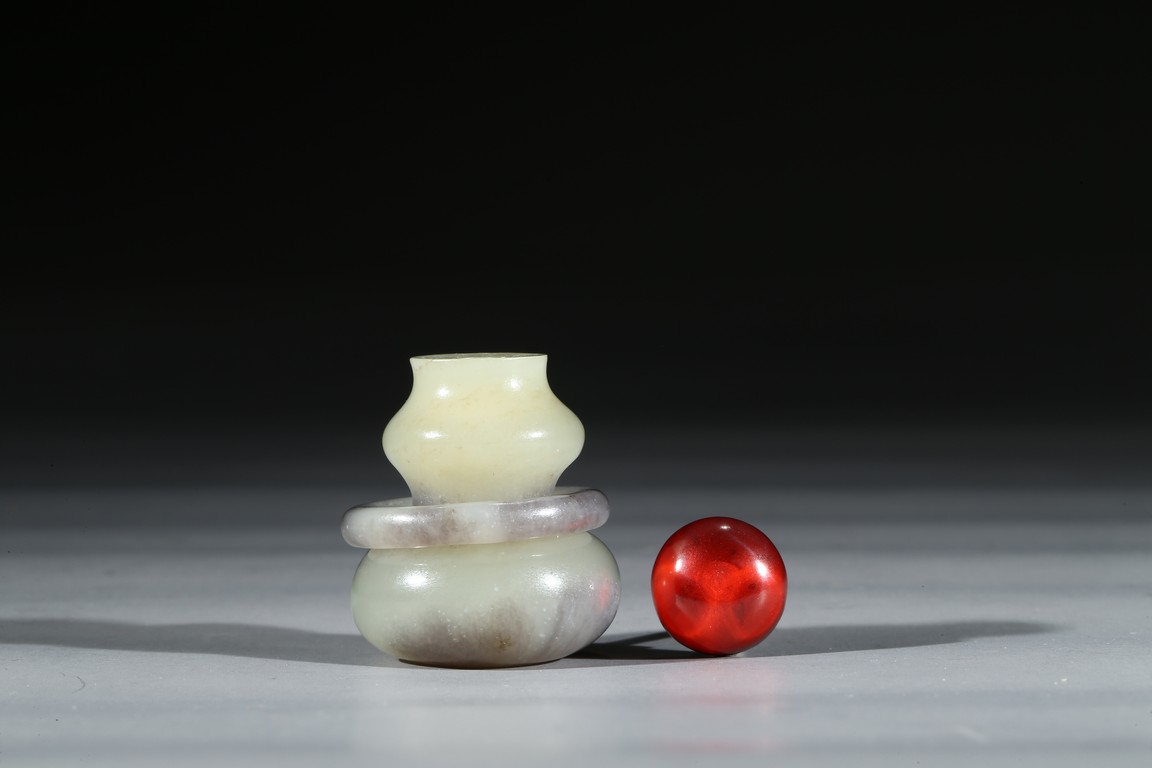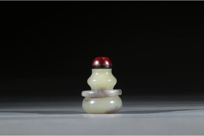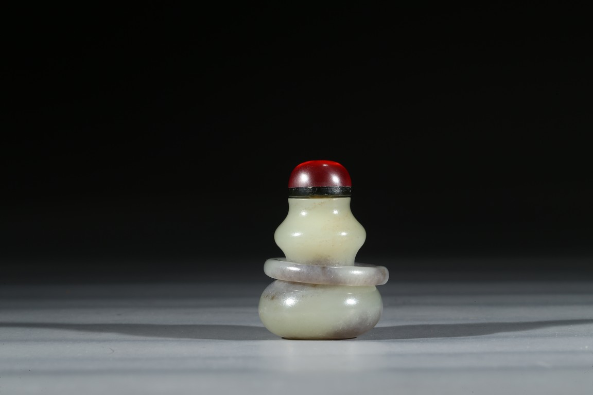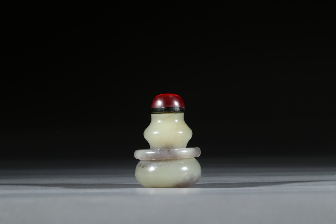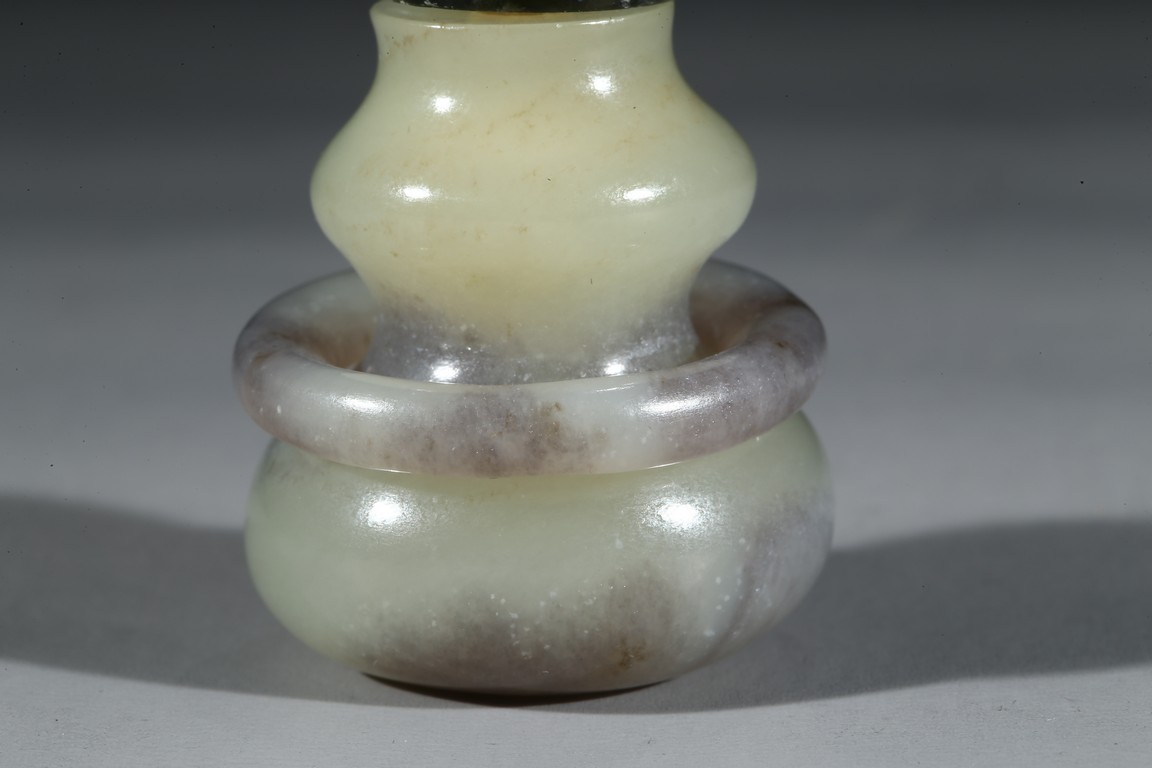 A CELADON JADE DOUBLE GOURD RING SNUFF BOTTLE 清 青白玉雕葫蘆環鼻煙壺