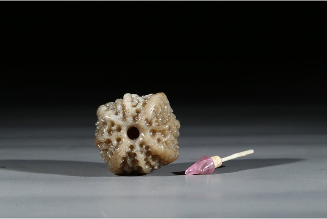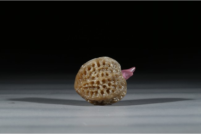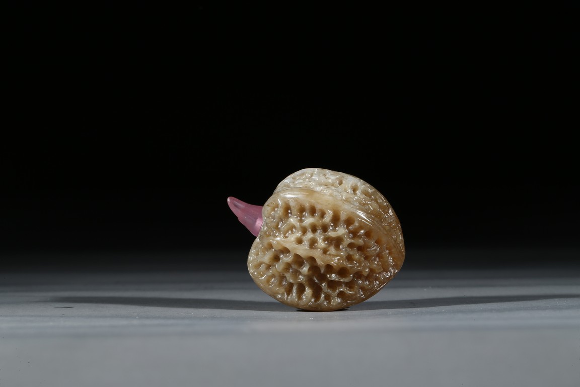 A JADE WALNUT SHAPED SNUFF BOTTLE 清 玉雕核桃型鼻煙壺