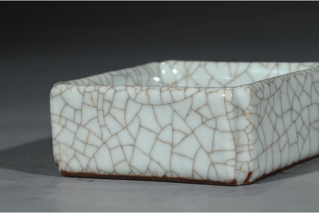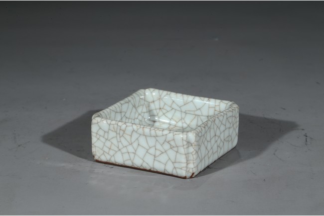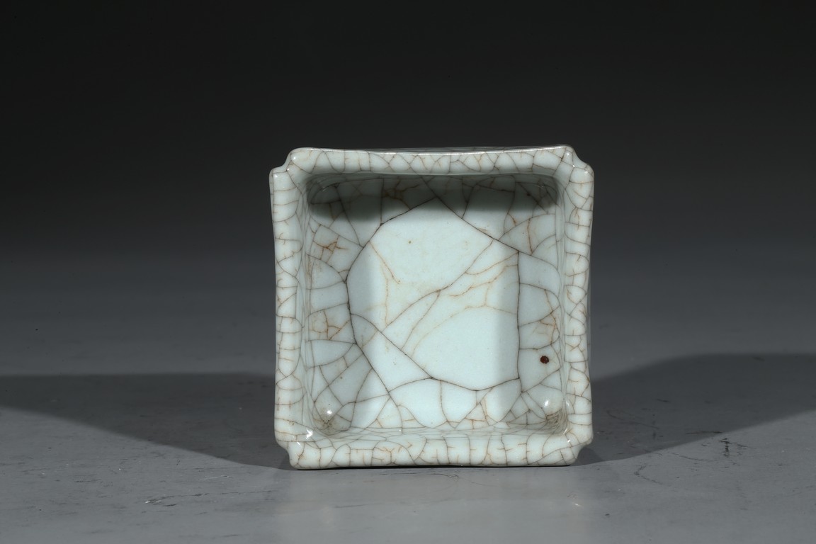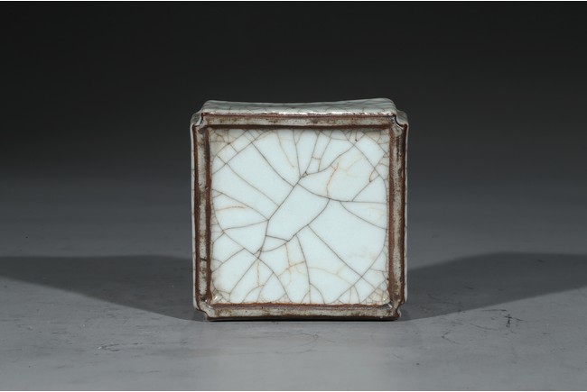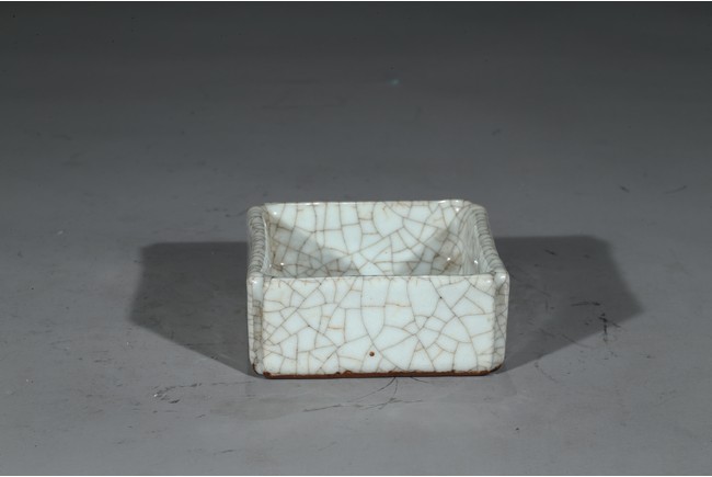 Of square form, overall covered in white glaze suffused with fine crackle pattern. Ming Dynasty period.