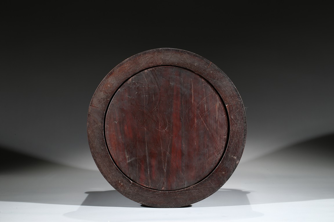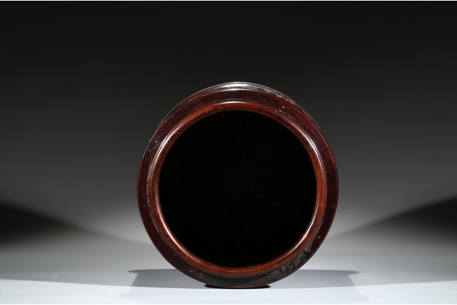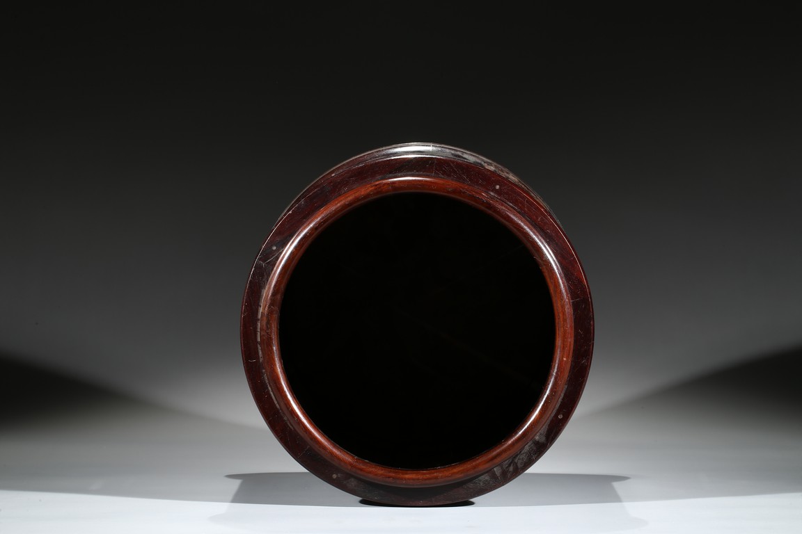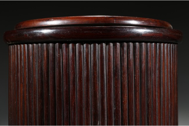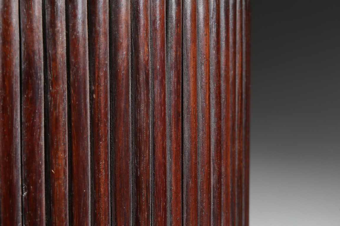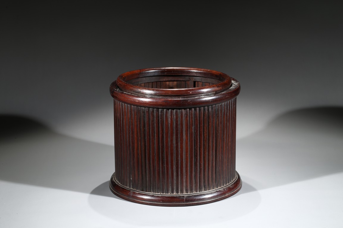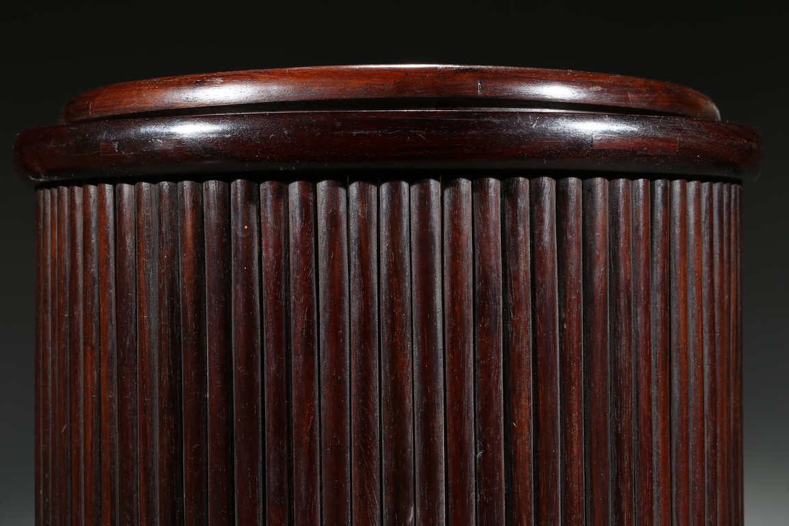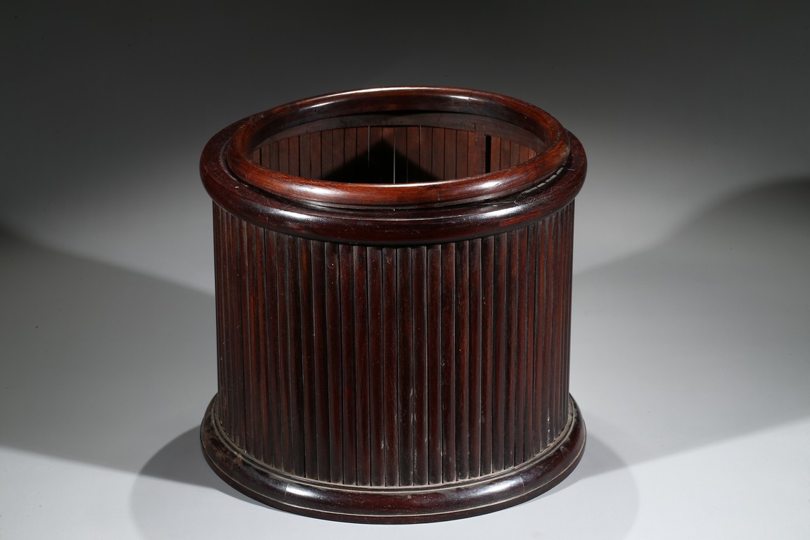 Of cylindrical form, the body formed by a row of vertical rosewood sticks. Qing Dynasty Period.