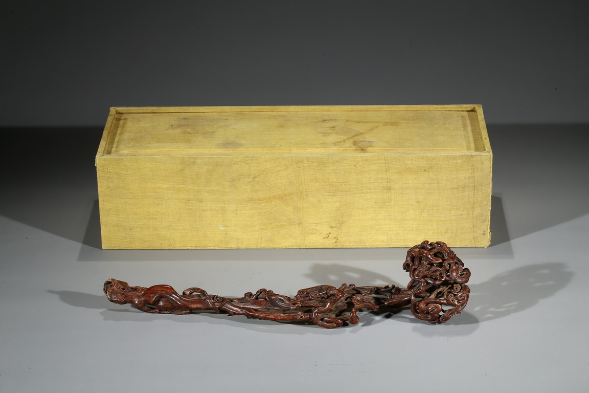 Please refer to a similar aloeswood ruyi scepter sold in Christie's London, on May 9, 2017, Lot 7 Provenance: Private New York collection 可參考倫敦佳士得2017.5.9 lot 7。