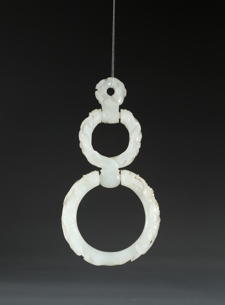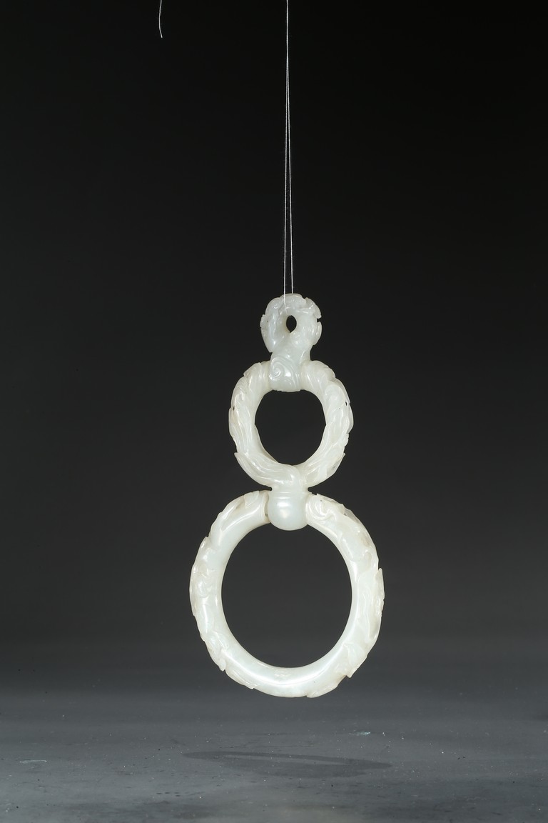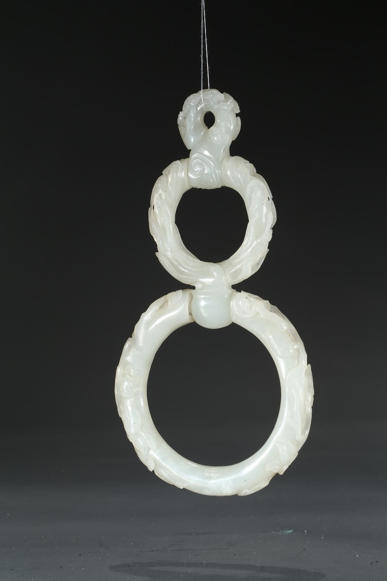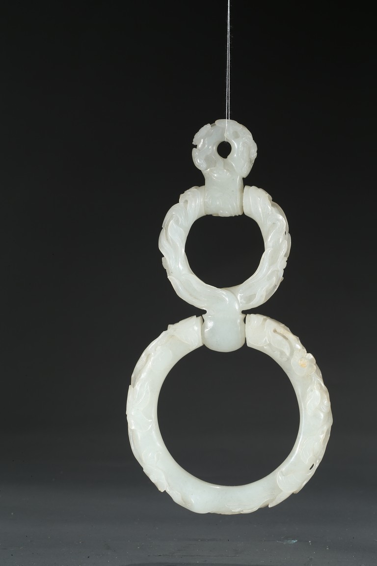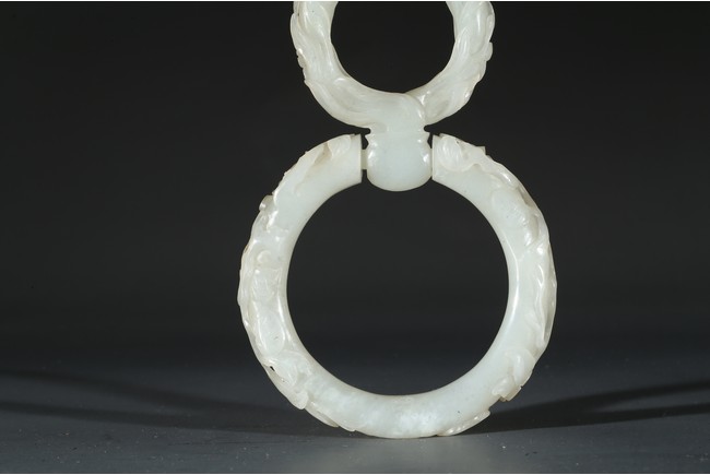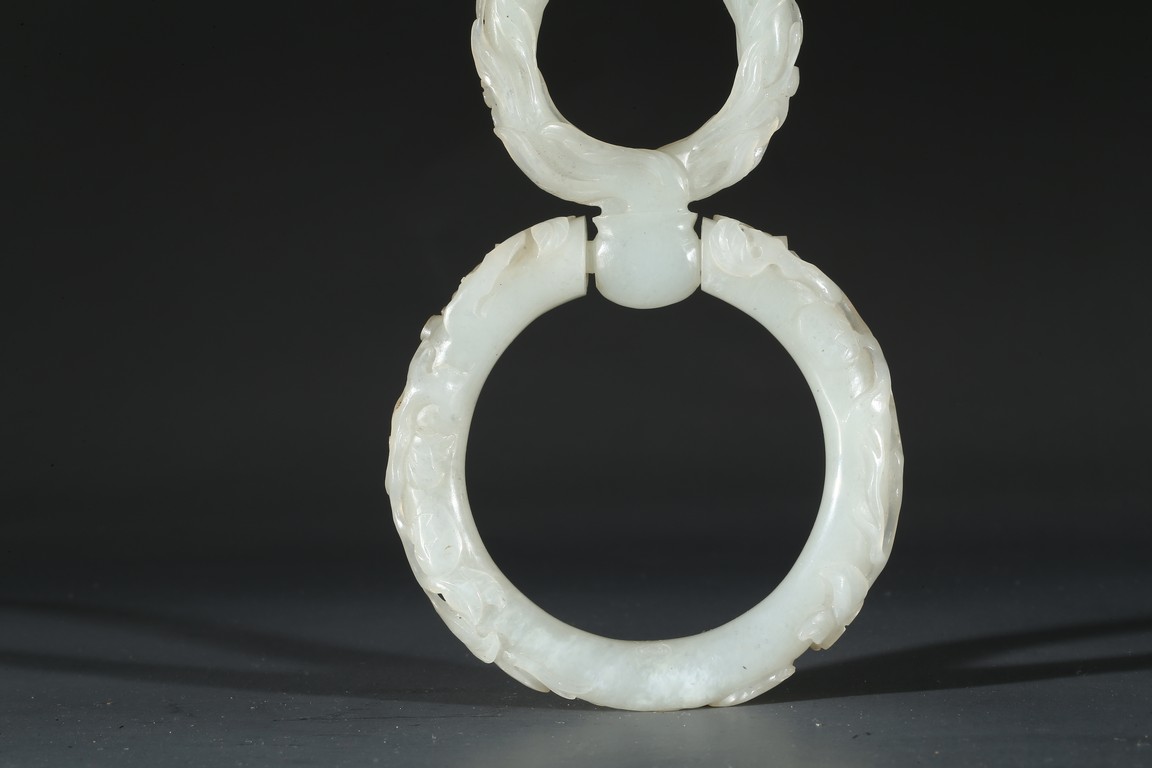 The three loop bangles finely carved to the exterior in relief with leafy lingzhi branches. Qing Dynasty period.