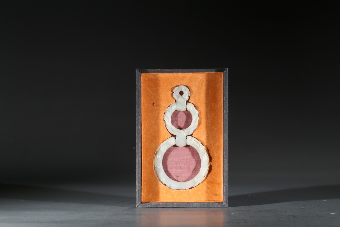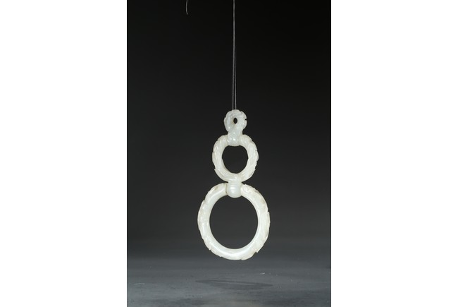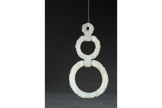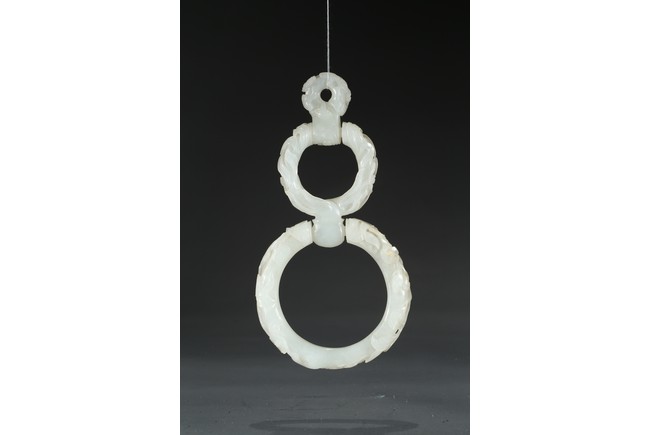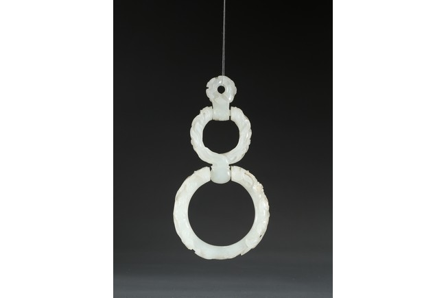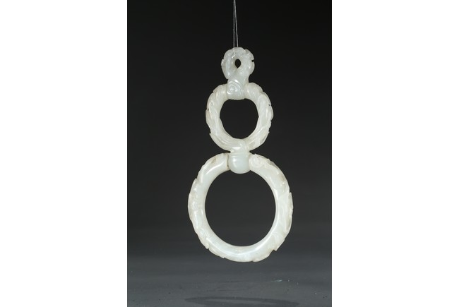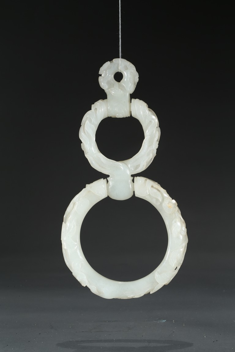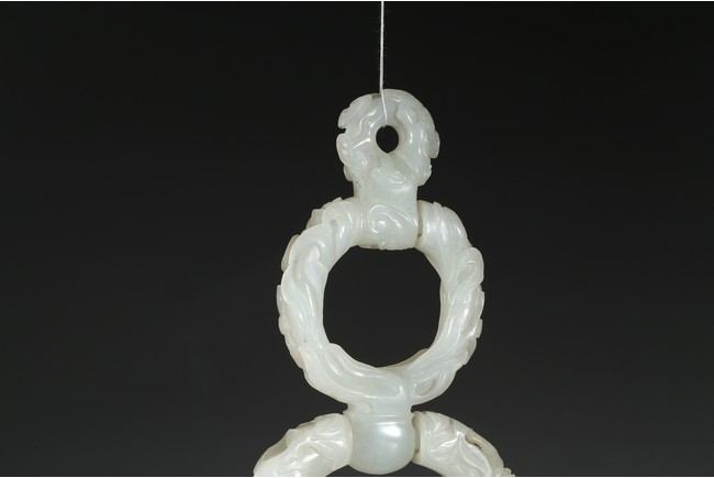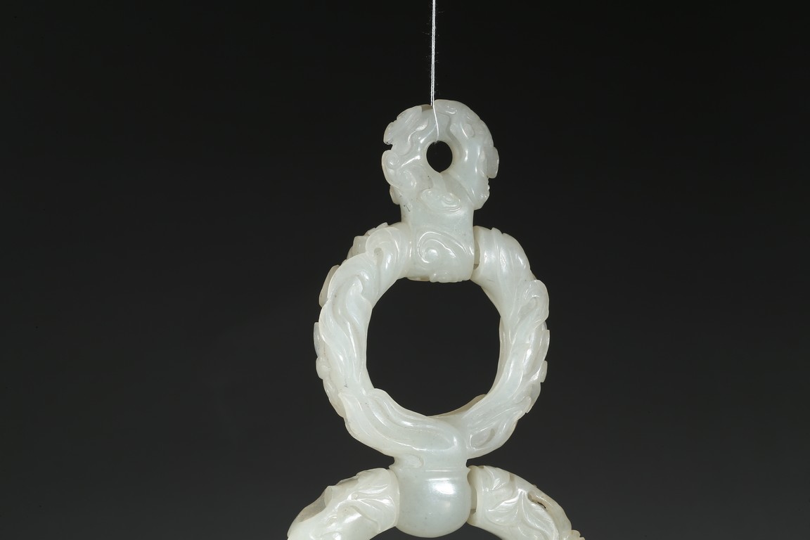 The three loop bangles finely carved to the exterior in relief with leafy lingzhi branches. Qing Dynasty period.