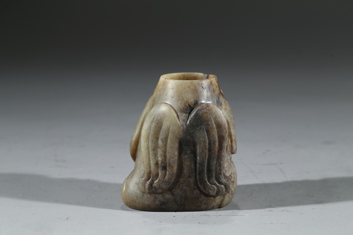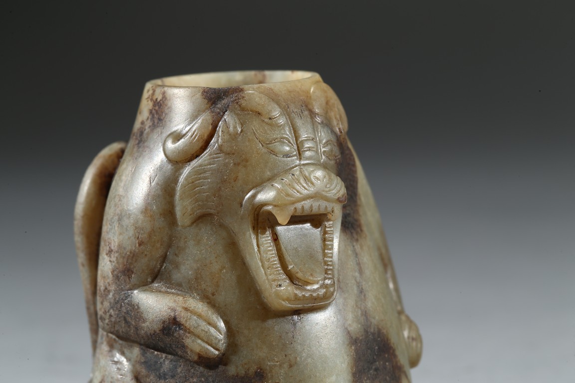 此件玉猿盞是漢代精美器物,用青玉為材,採用細陰線、浮雕的技法雕制而成,包漿醇熟老道。玉猿形狀勁健雄偉,神態兇猛,威風凜凜,極為生動逼真,實屬罕見的珍貴玉雕作品。