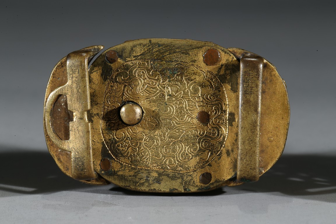 GROUP OF GILT BRONZE AGATE EMBELLISHED BUCKLES 清 銅鎏金瑪瑙扣飾一組