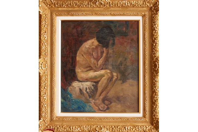 Oil on canvas. Nude. Framed. Signed. Attributed to Wu Zuoren. Wu Zuoren (1908-1997)
