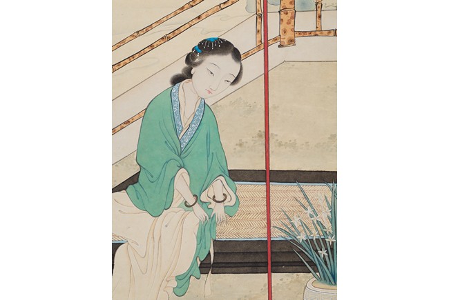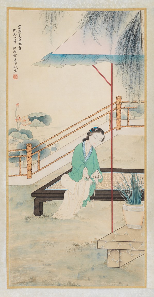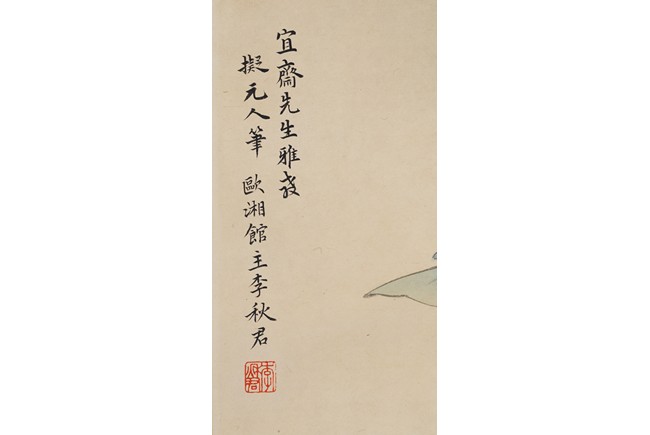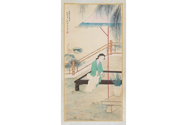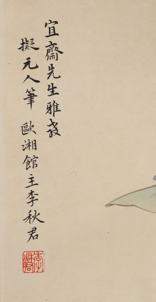 Color and ink on paper, figure, hanging scroll, inscribed and signed, with one seal mark. Li Qiujun (1899-1973)