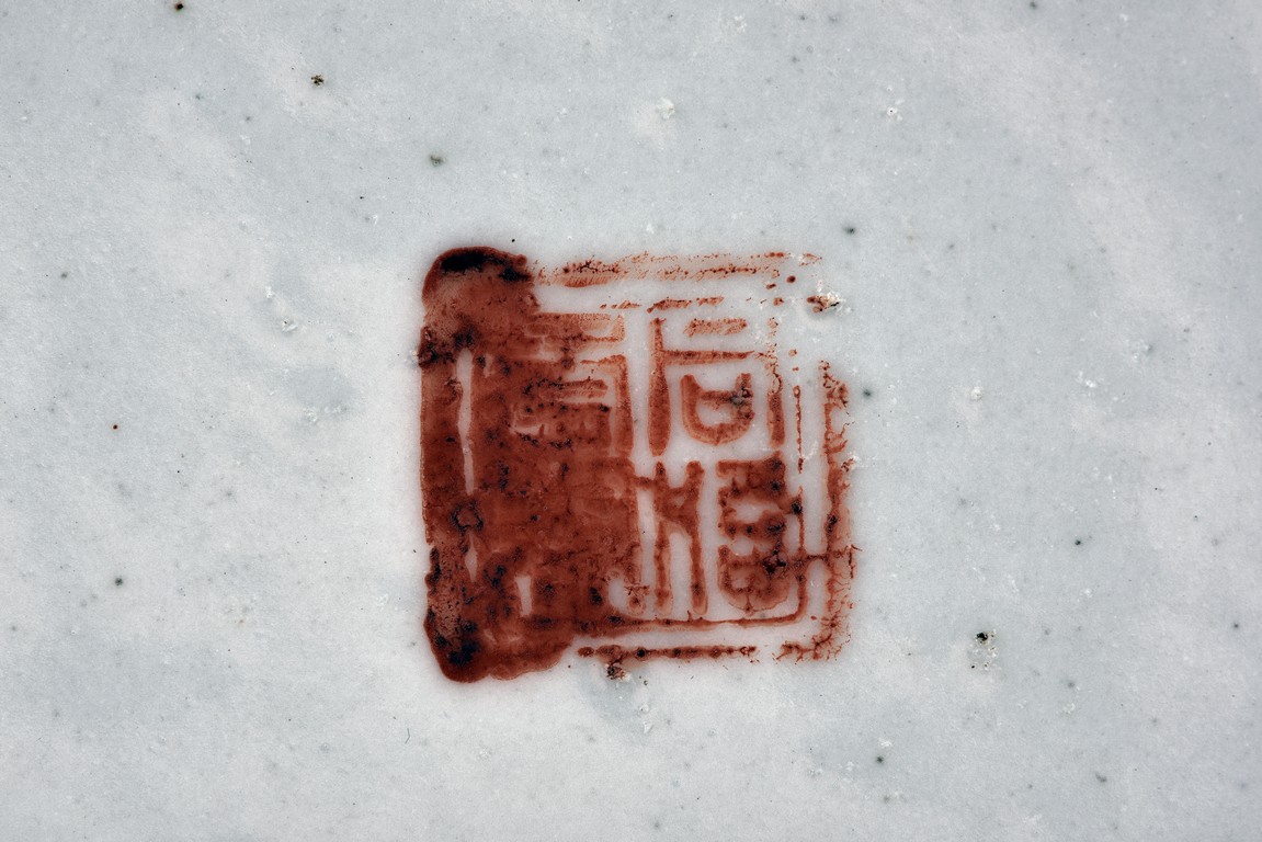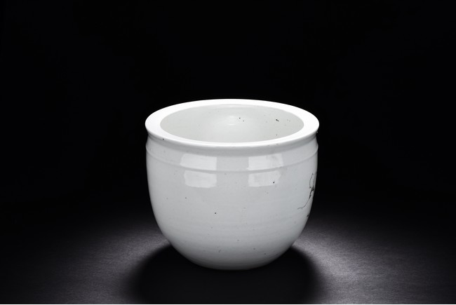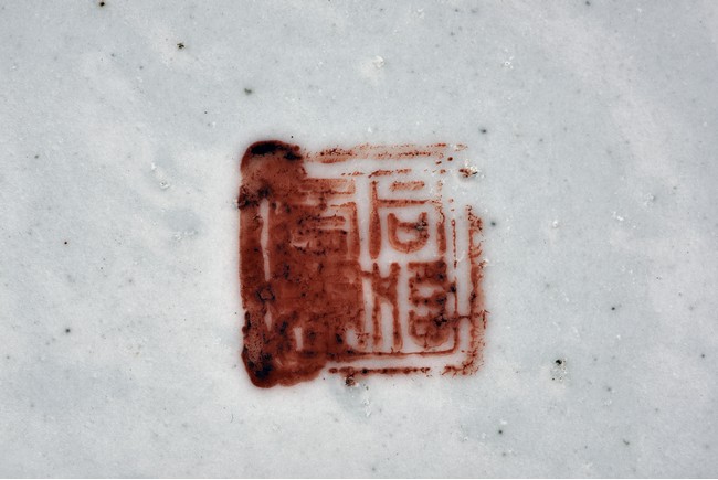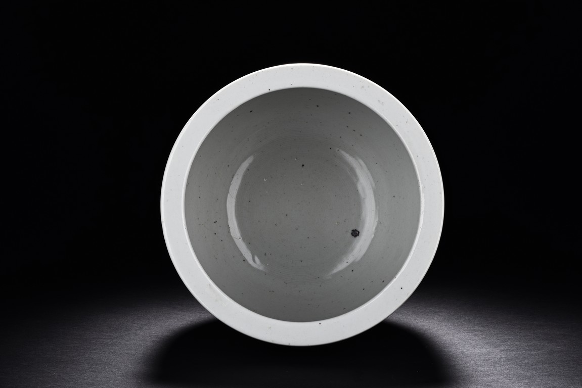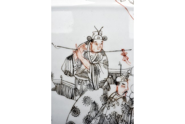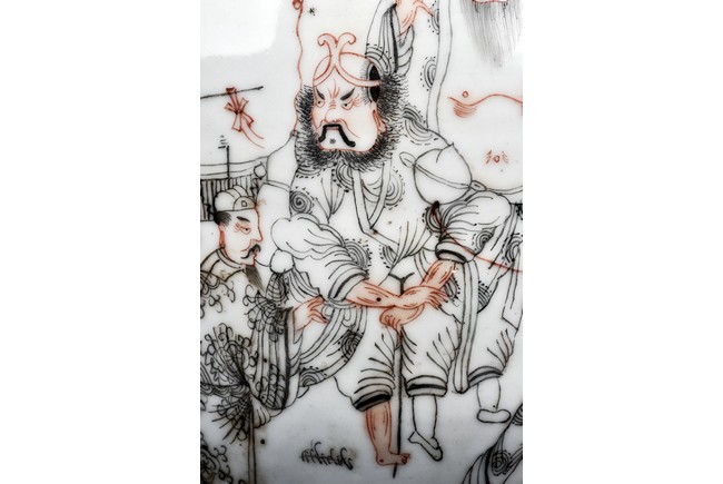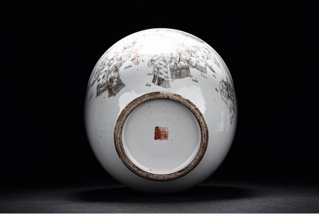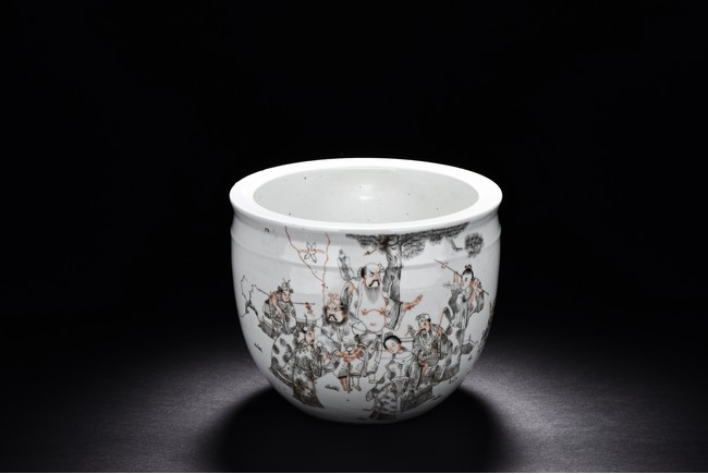 Of rounded sides, the body outlined with eight immortals in grisaille. The base with a three character mark.
