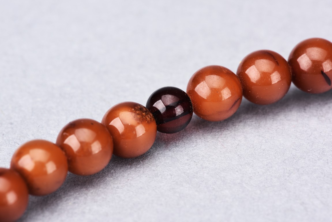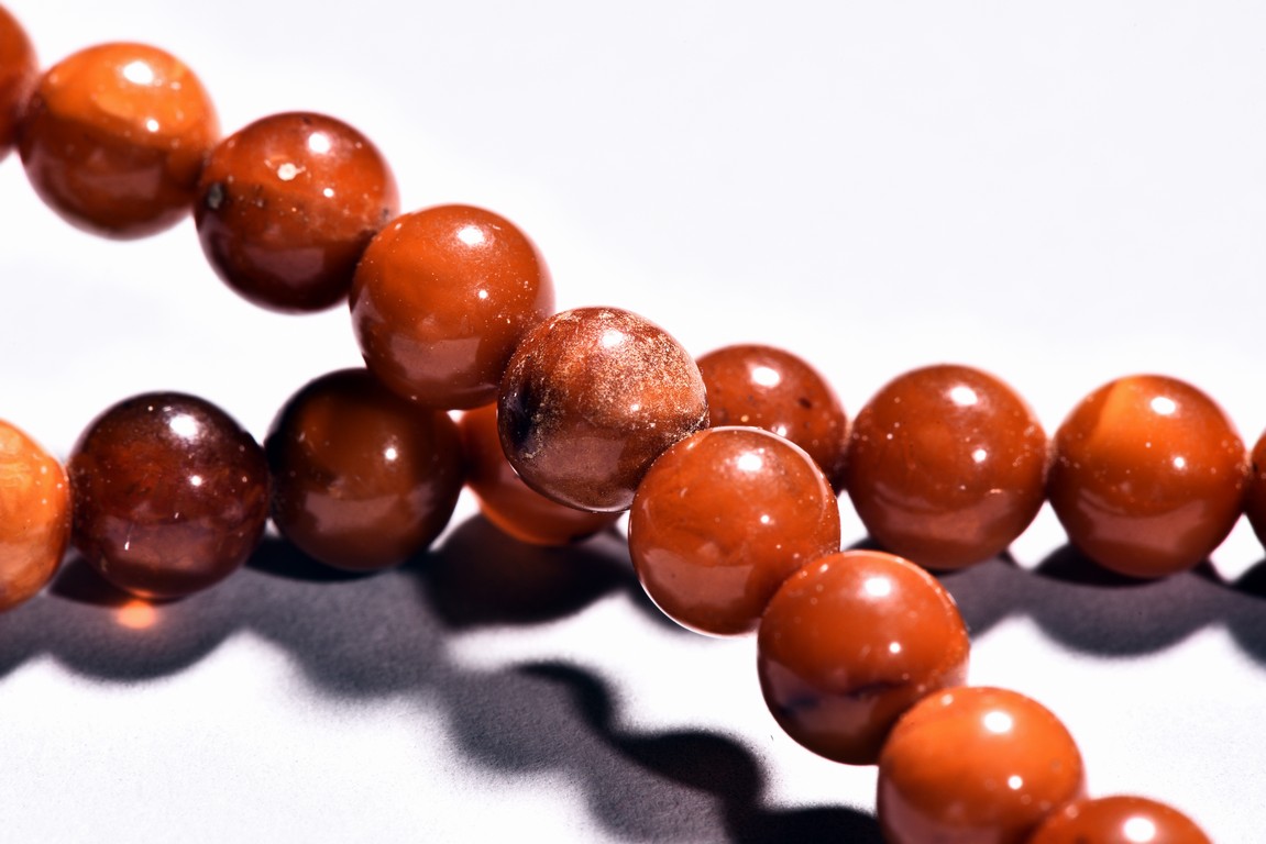 Comprising of numerous small rounded amber beads, varies from dark to light caramel tone.