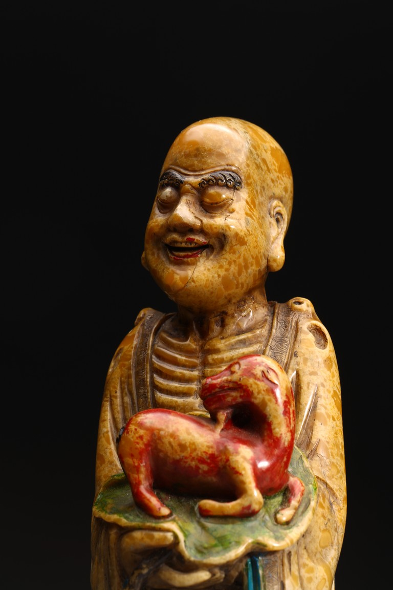 A SHOUSHAN STONE FIGURE OF ARHAT    民國 壽山石雕羅漢立像