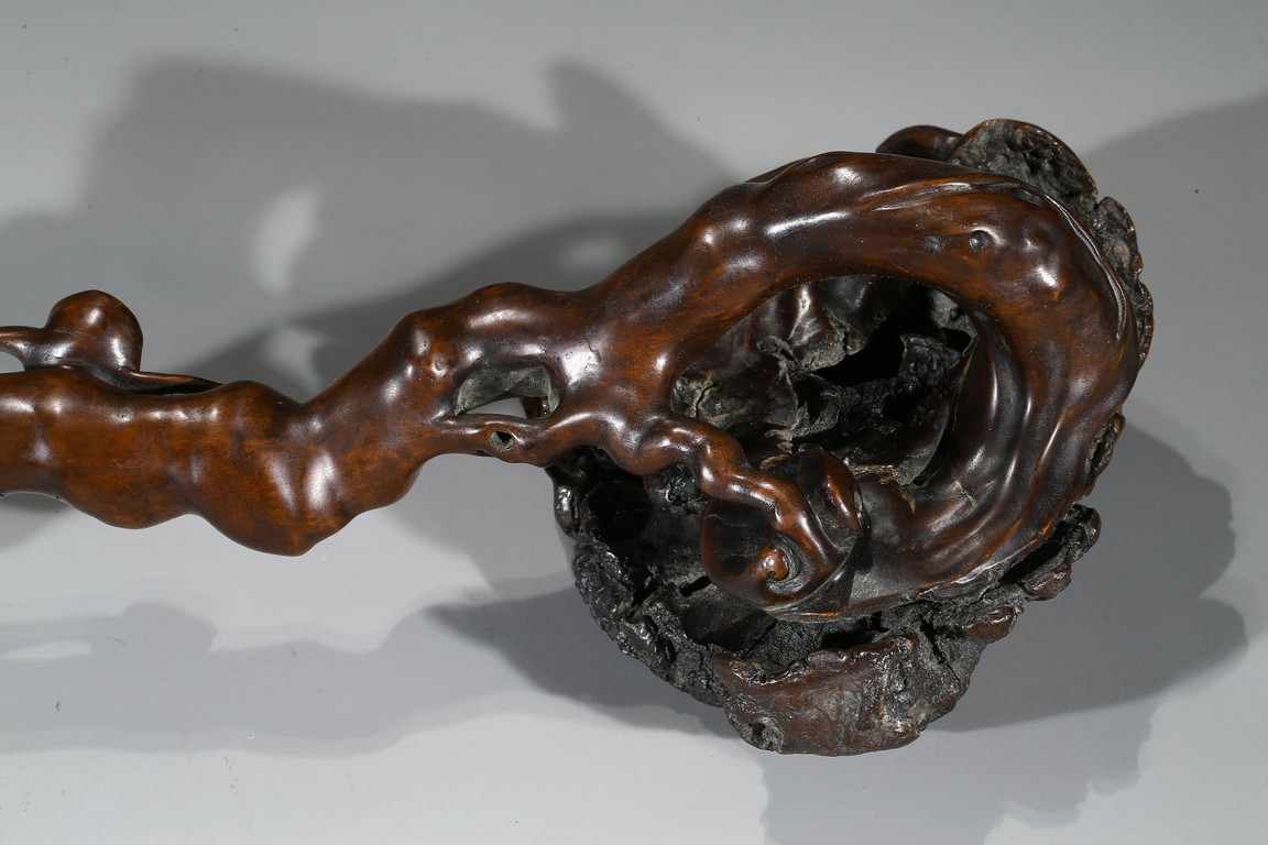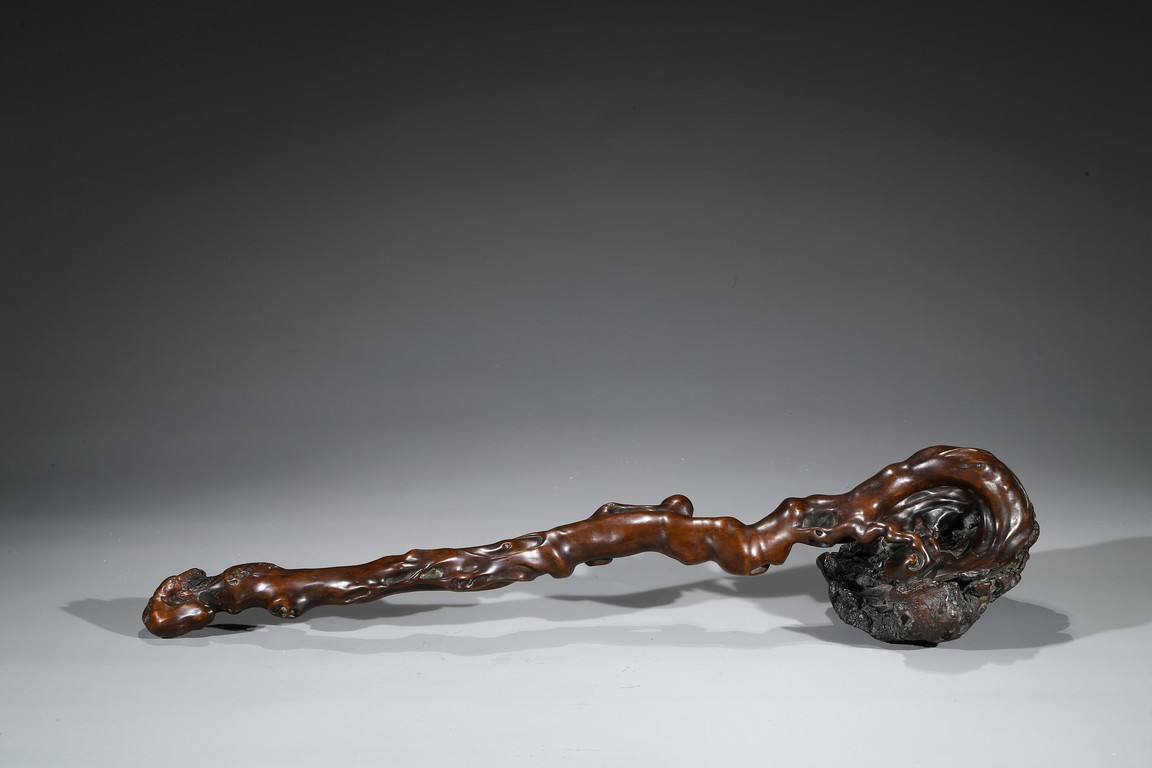 The head is naturally carved in lingzhi head shape, and the handle is modelled as tree branch. Qing Dynasty Period