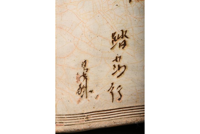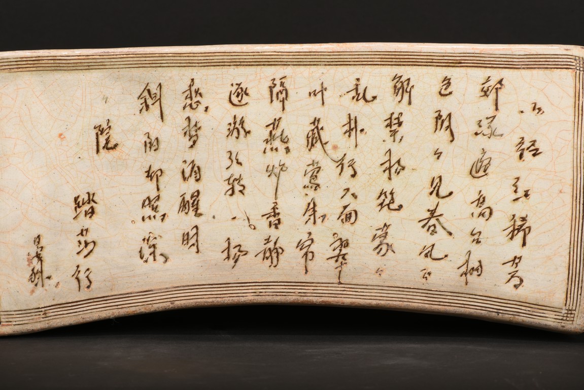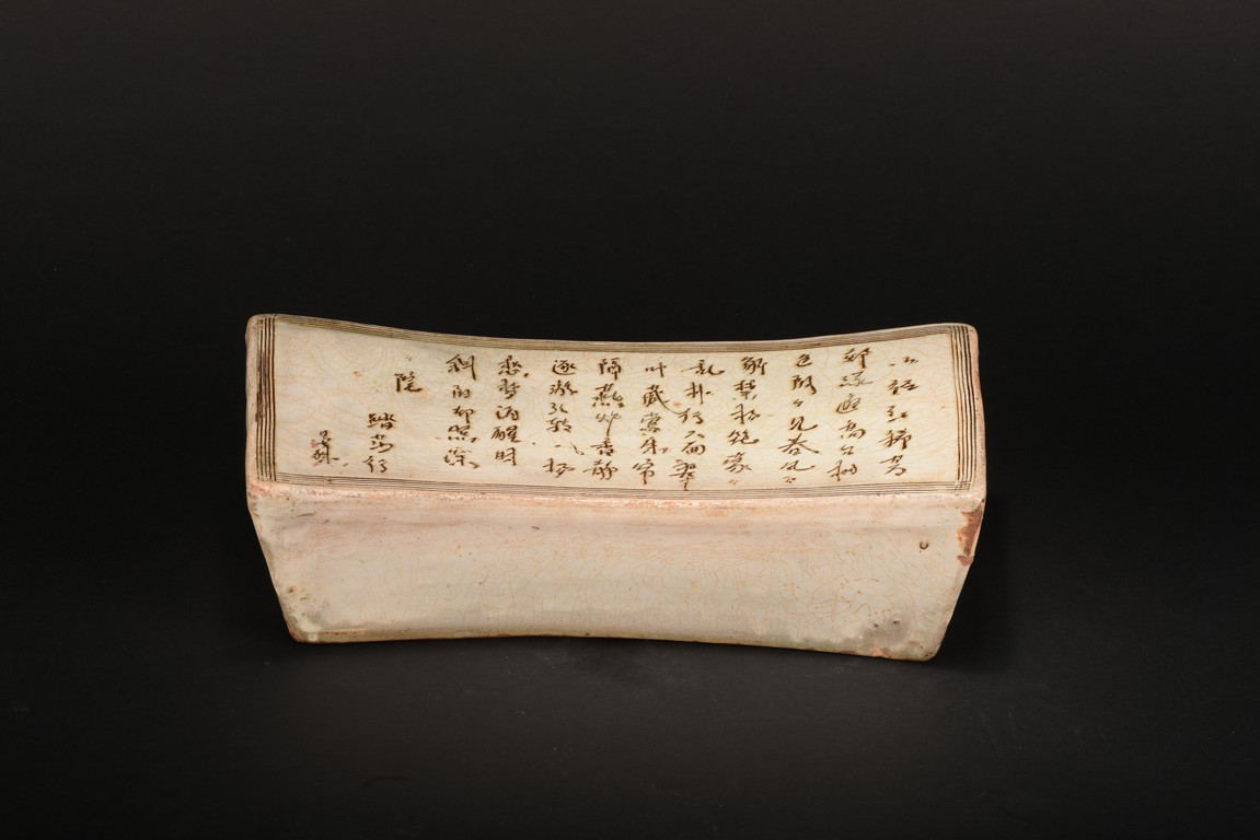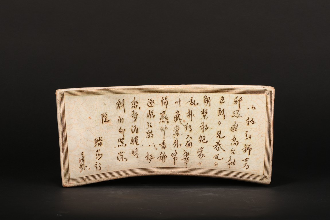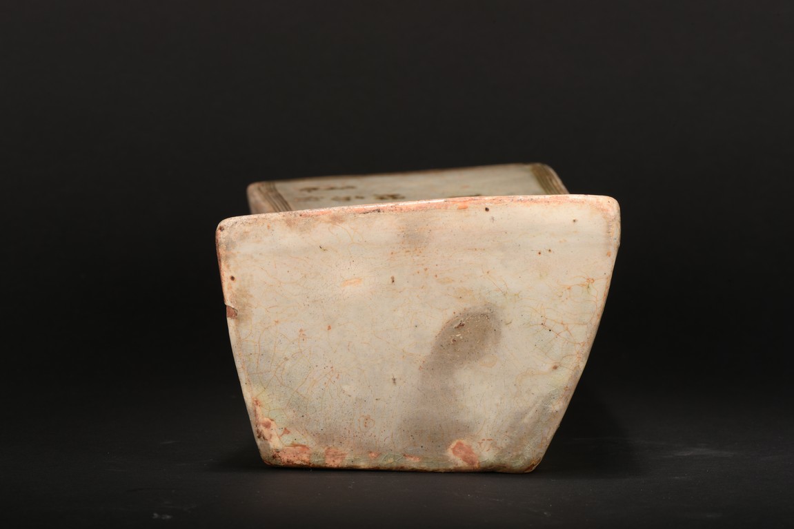 Of shaped rectangular section tapering towards the base, the concave top exquisitely carved with the 'Ta Sha Xing' poetry enclosed rectangular lines border. Qing Dynasty period.