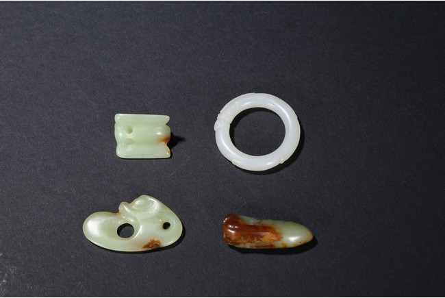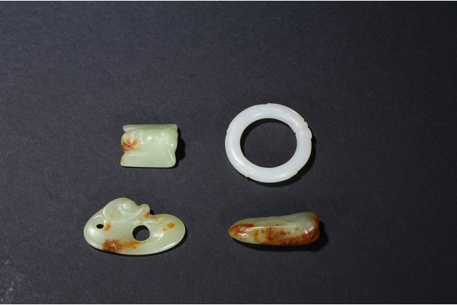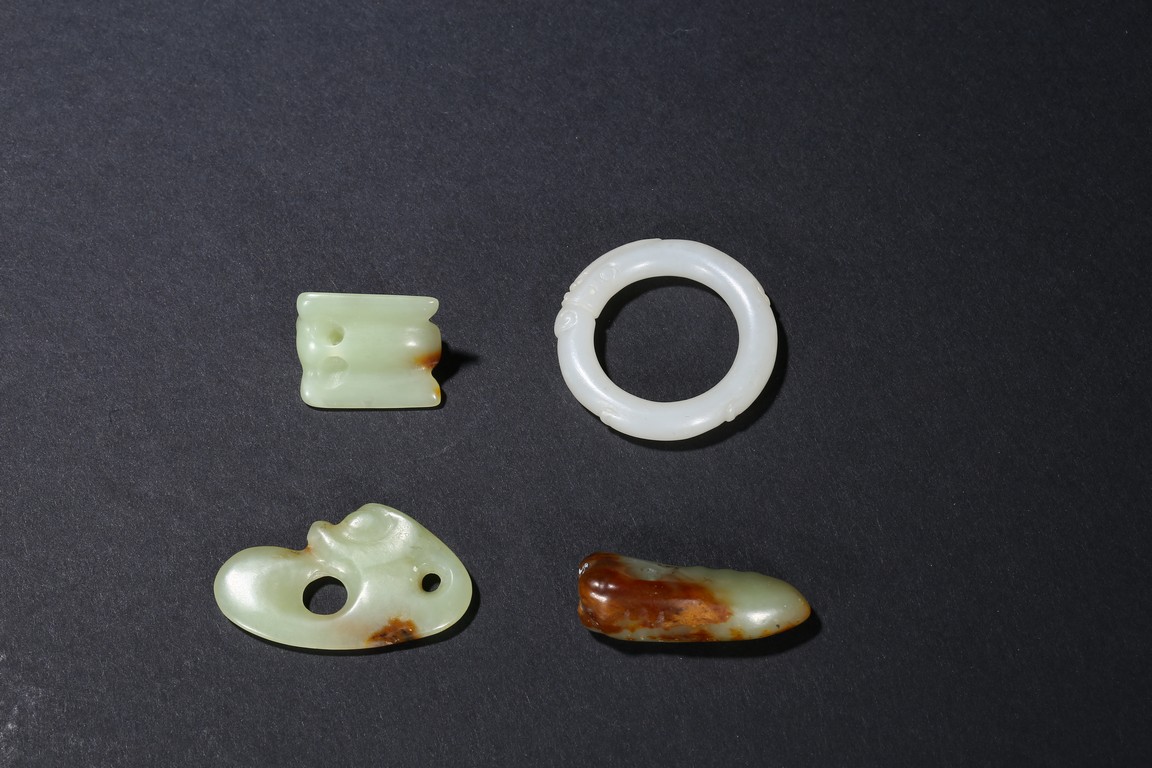 Total of four various small jade carved ornaments. Ming/Qing Dynasty period.